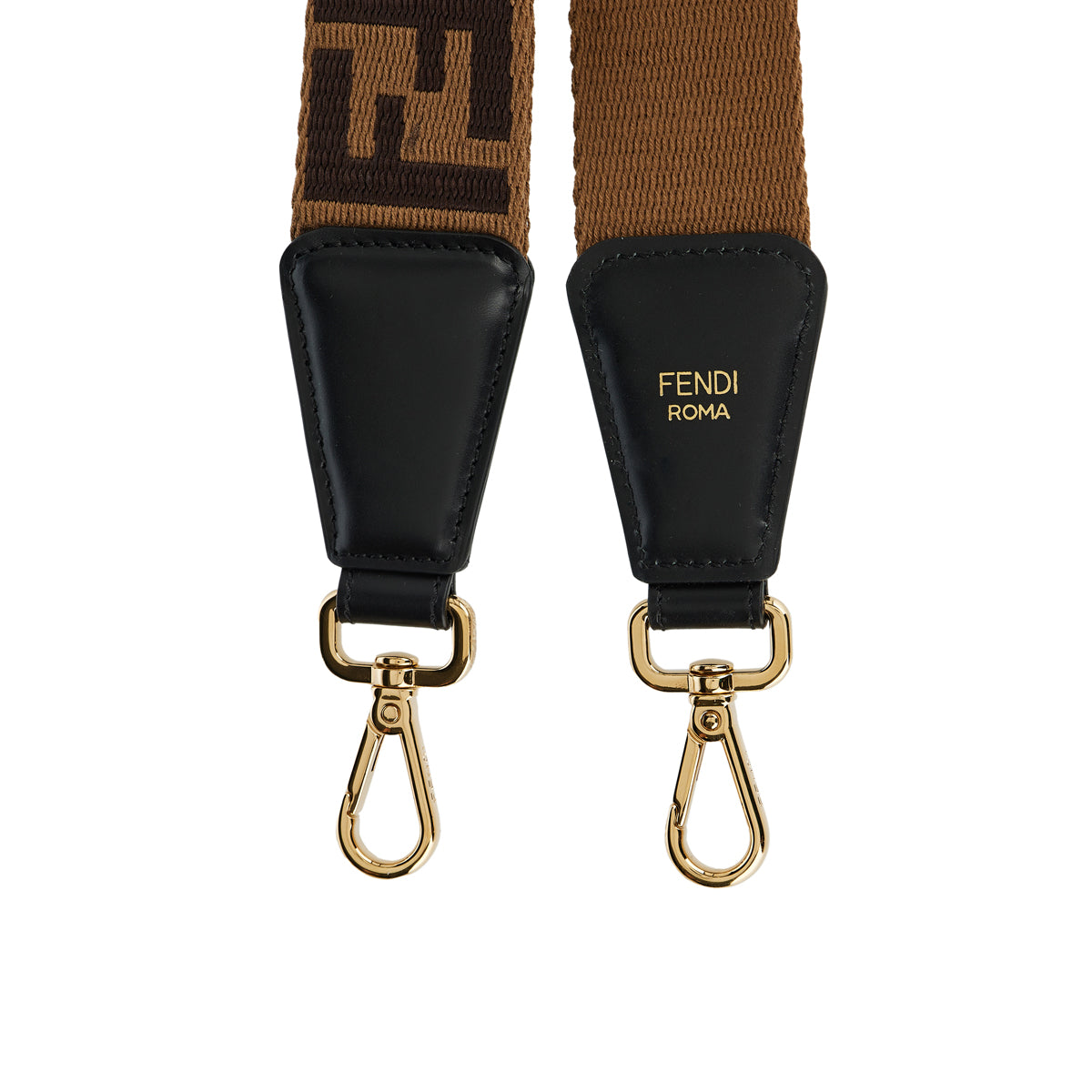 Customize your favorite bag with Fendi’s ‘Strap You’ shoulder strap, crafted in brown fabric with iconic FF motif and leather ends. A bold, statement-making accessory for everyday luxury.