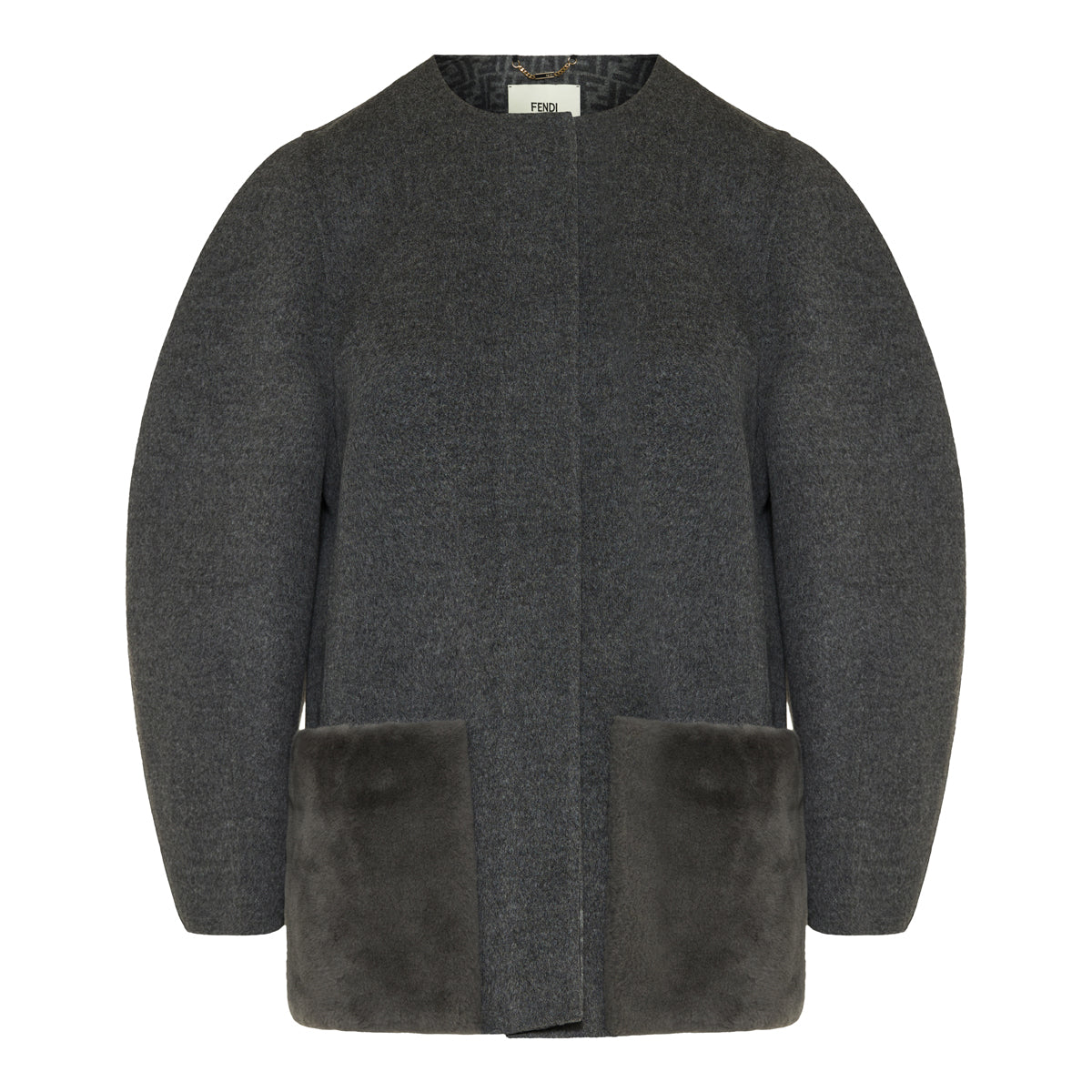 This Fendi blouson jacket merges structured tailoring with a modern sensibility. Crafted in a double mélange wool blend with subtle silk, it features a regular silhouette, concealed front closure, and sheepskin pockets for refined detailing. Ideal for elevated casual or smart-casual wear, it lends warmth and sophistication to city looks.