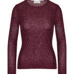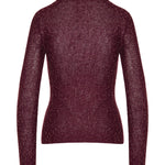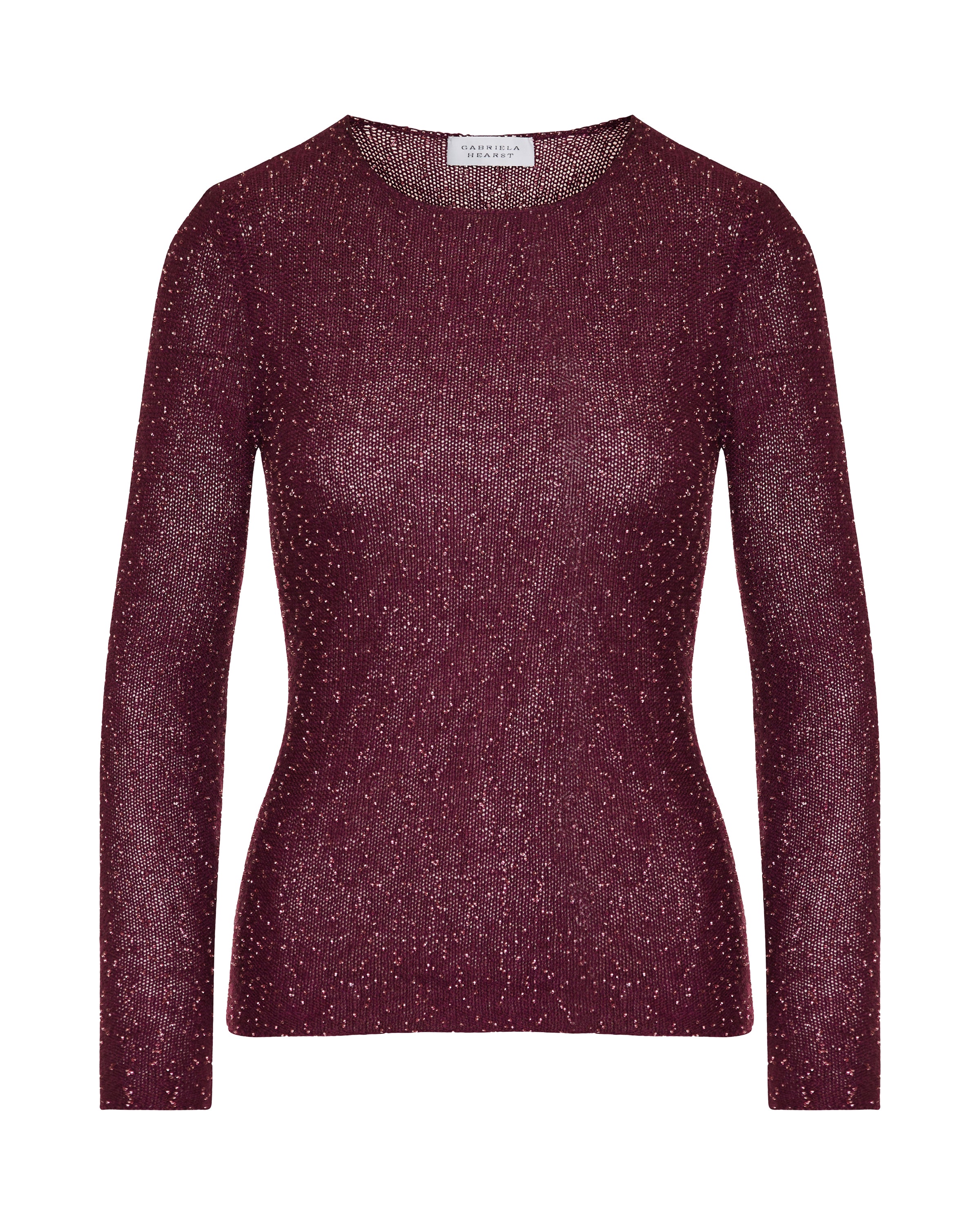 A luxurious Gabriela Hearst Nello knit sweater in bordeaux beaded cashmere-silk blend, featuring a crew neck and slim, flattering silhouette enhanced with shimmering glass bead detailing. Designed for refined daytime and evening wardrobes with contemporary couture allure.
