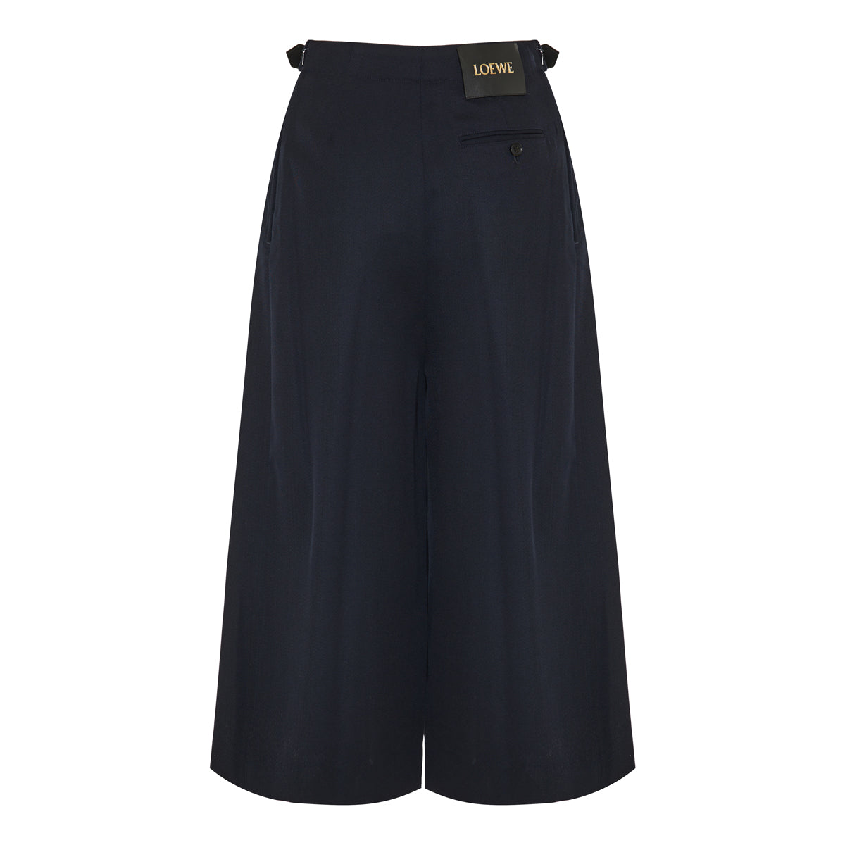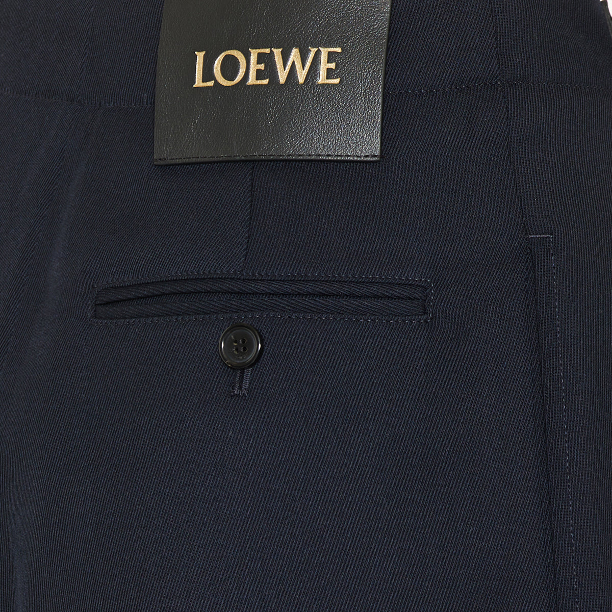 Tailored trousers crafted from a medium-weight wool and silk blend, featuring a gathered front and leather belt detail. Designed with a regular fit and mid-rise waist, these trousers offer both comfort and elegance.