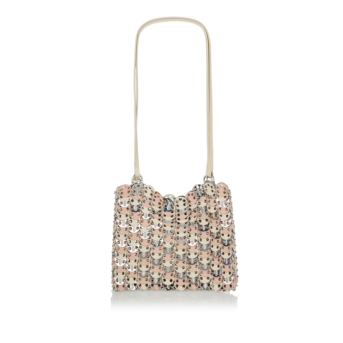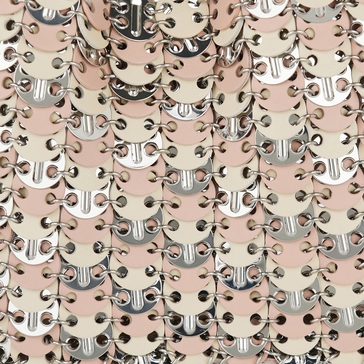 The Rabanne Tricolor Nano shoulder bag is a statement piece suited for both formal and evening occasions. With its chainmail construction, gold-tone finish and compact silhouette, it offers refined elegance while elevating any refined ensemble.