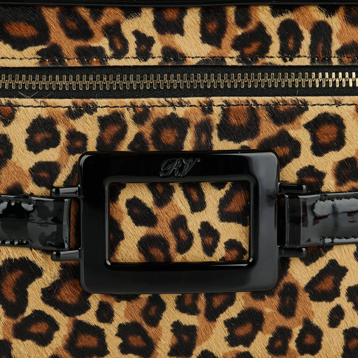 The Roger Vivier Belle Vivier Vanity Mini Handbag is a compact, structured accessory crafted from multicolor calfskin leather. It features a signature tortoiseshell buckle, a top handle, and a detachable shoulder strap, offering versatility and elegance.