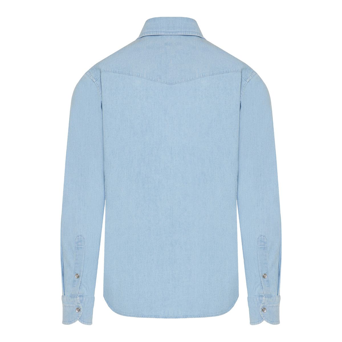 Tom Ford redefines casual sophistication with this long-sleeved denim shirt. Crafted from pure cotton, it offers a structured yet relaxed silhouette, perfect for smart-casual dressing. The classic button-down design is elevated with tailored lines and a refined finish, embodying the brand’s commitment to modern elegance. A versatile piece that transitions seamlessly from daywear to evening style.