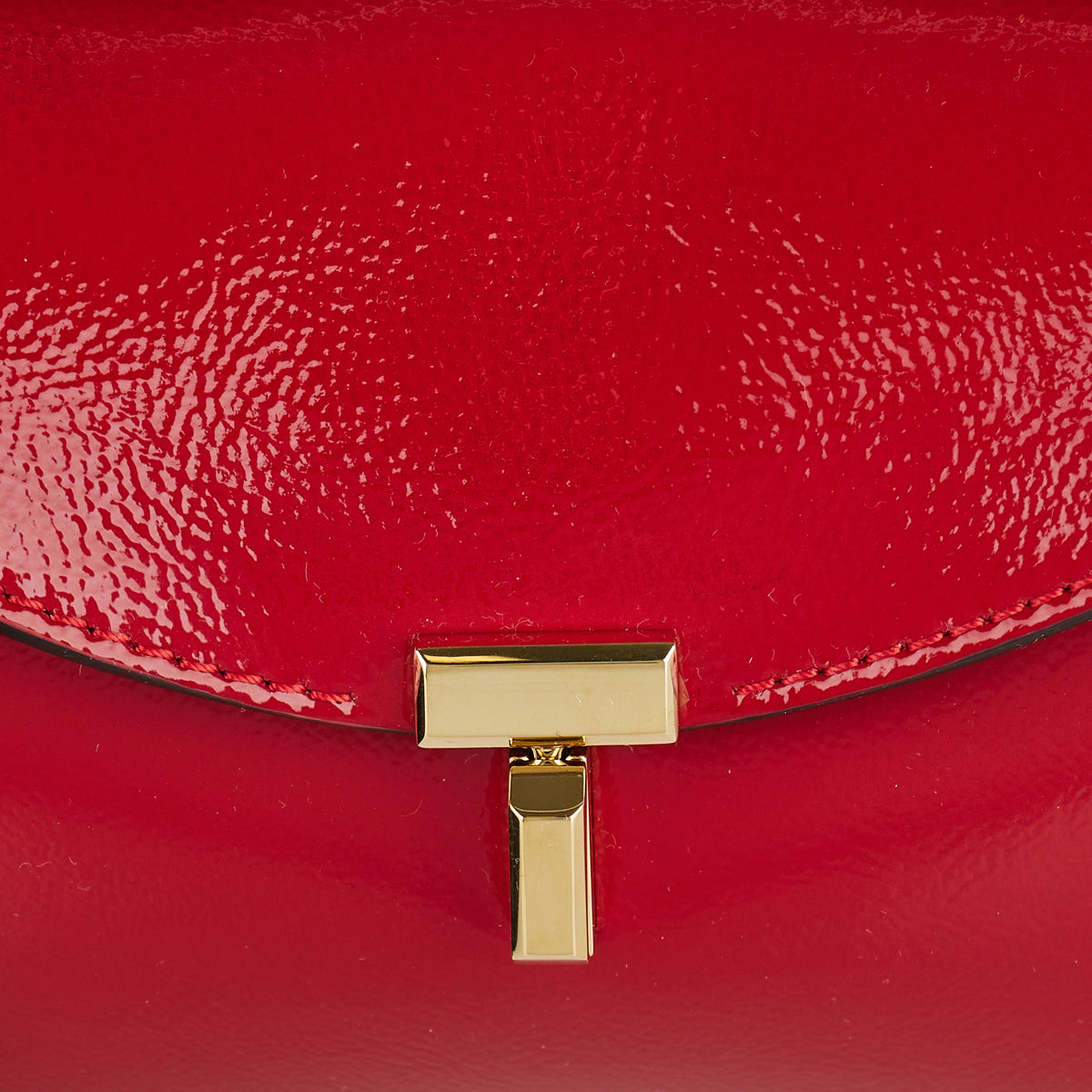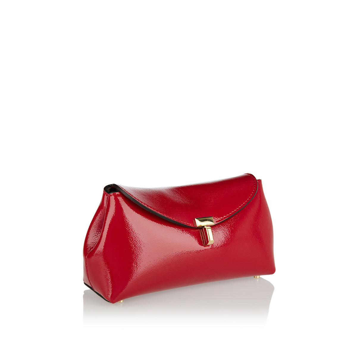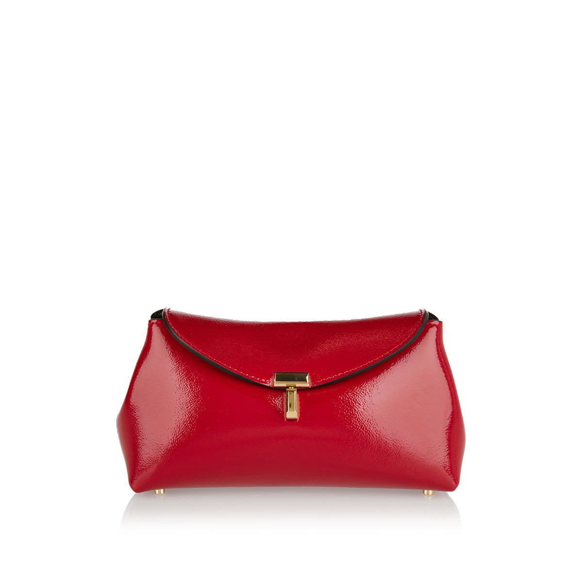 A refined mini clutch from Totême, featuring glossy naplack leather and the signature T-Lock twist clasp. Ideal for evening events and formal occasions, this compact accessory offers a touch of luxury and sophistication to your ensemble.