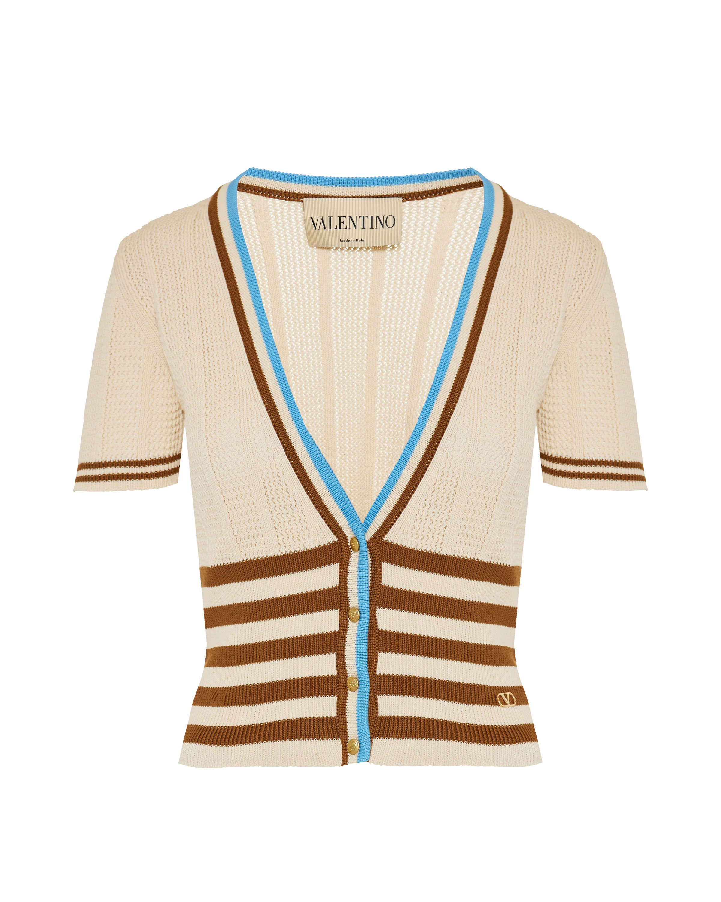 VALENTINO GARAVANI Open-knit striped cotton cardigan