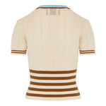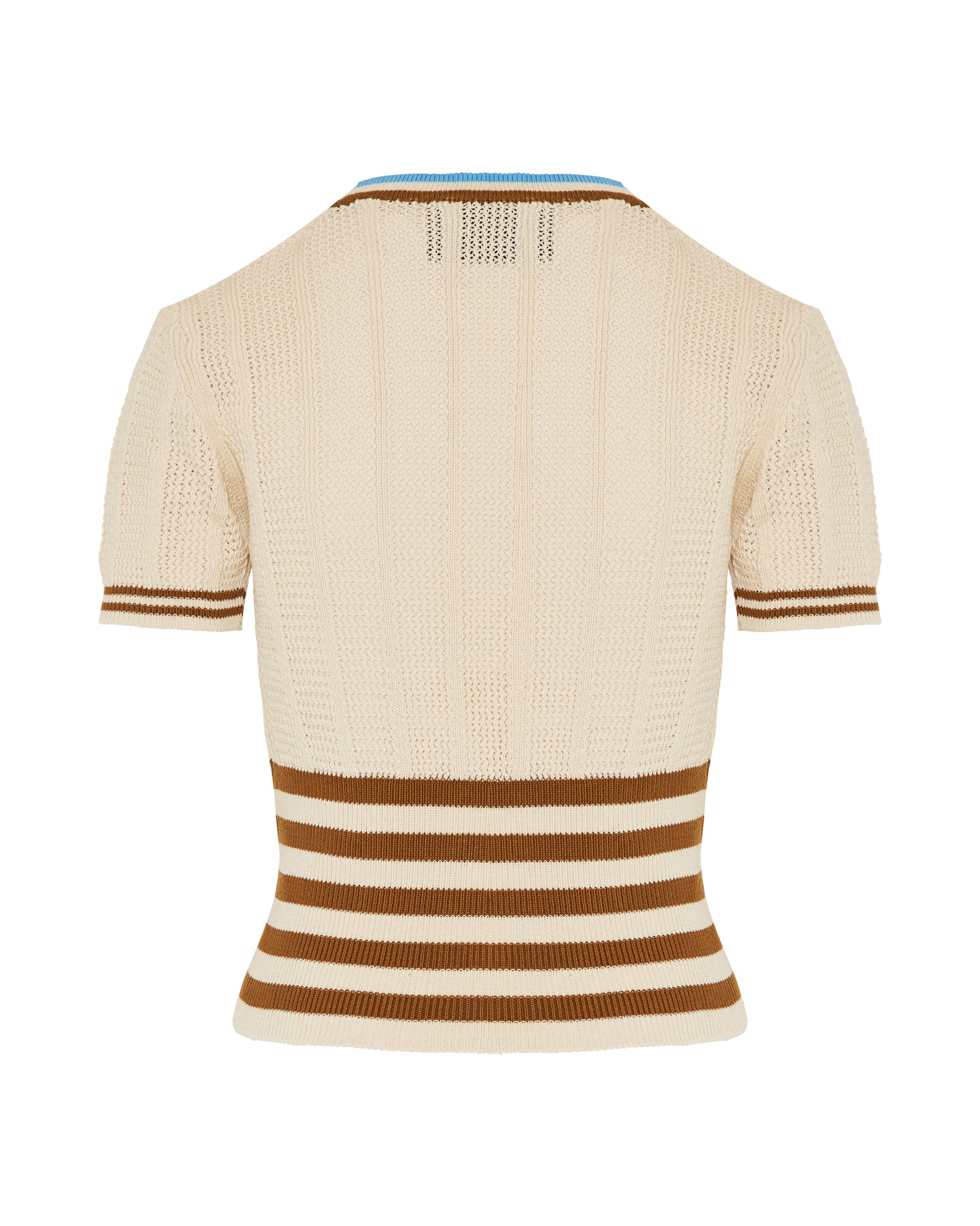 A lightweight cardigan crafted from cotton with an open-knit design, defined by relaxed proportions and subtle striped detailing.