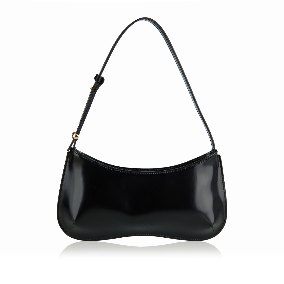 The Jacquemus Le Bisou shoulder bag is a sleek silhouette in glazed calf leather with silver-tone hardware. Featuring a zip closure, adjustable strap with engraved bead, and compact proportions, it embodies modern elegance. A versatile mini bag designed for both day and evening wear.