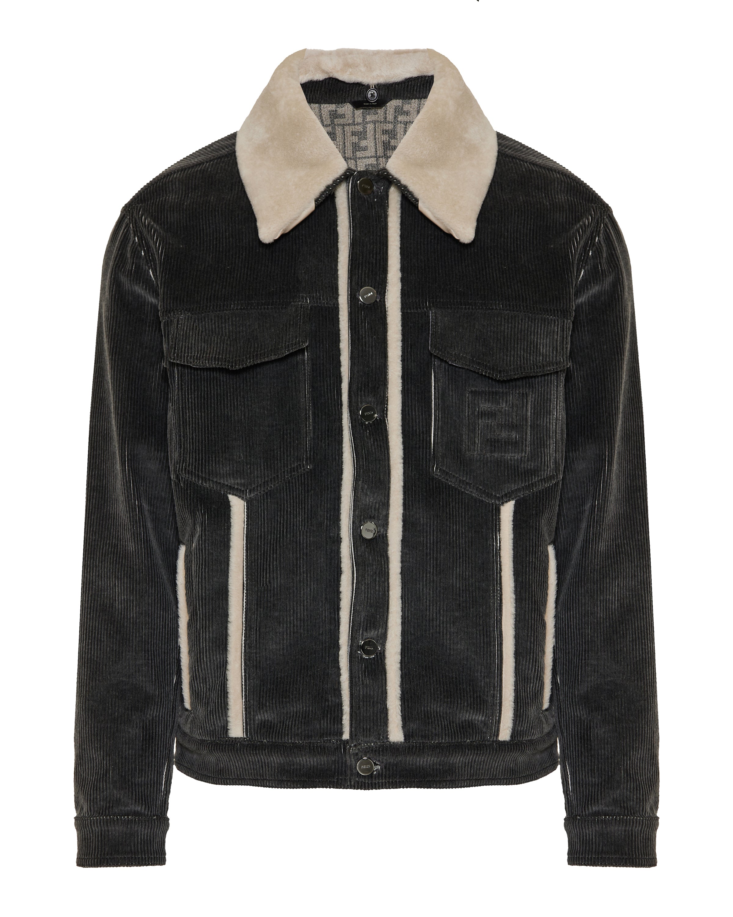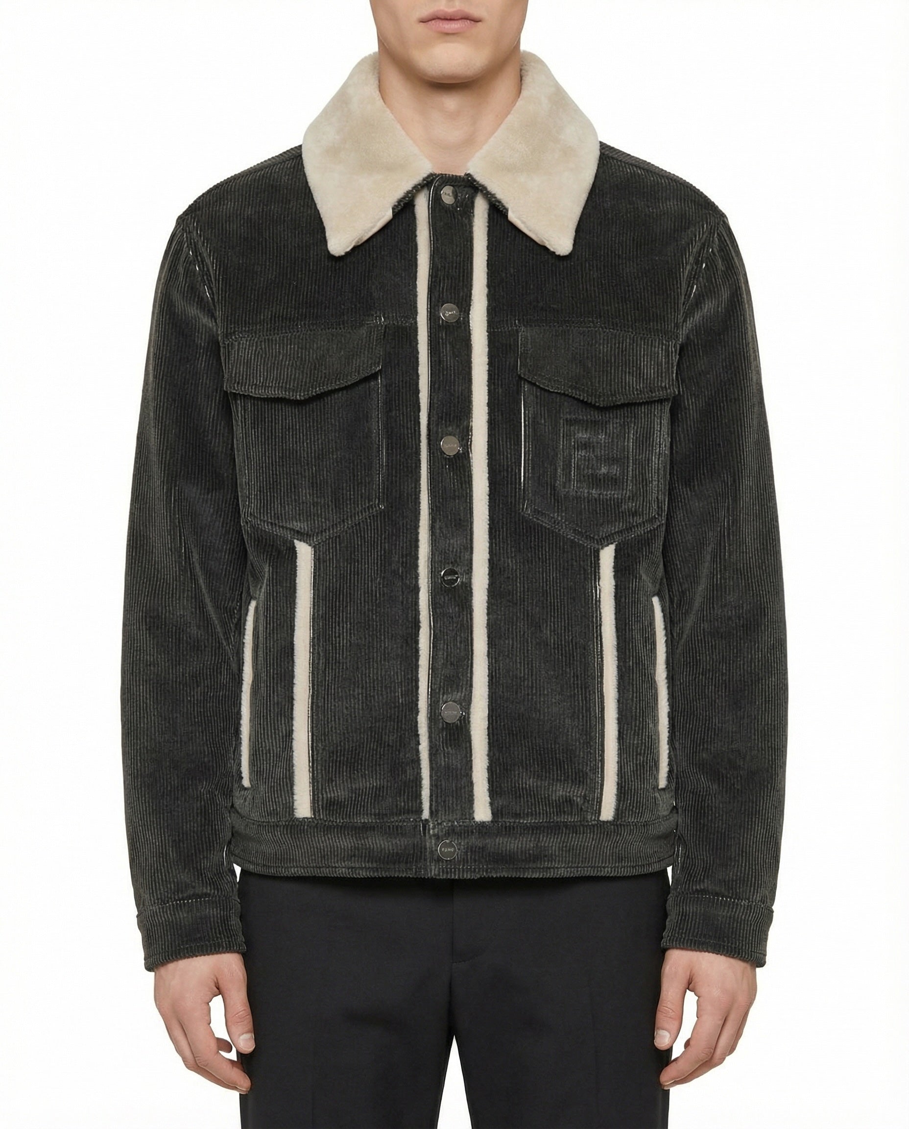 Corduroy jacket with shearling trim