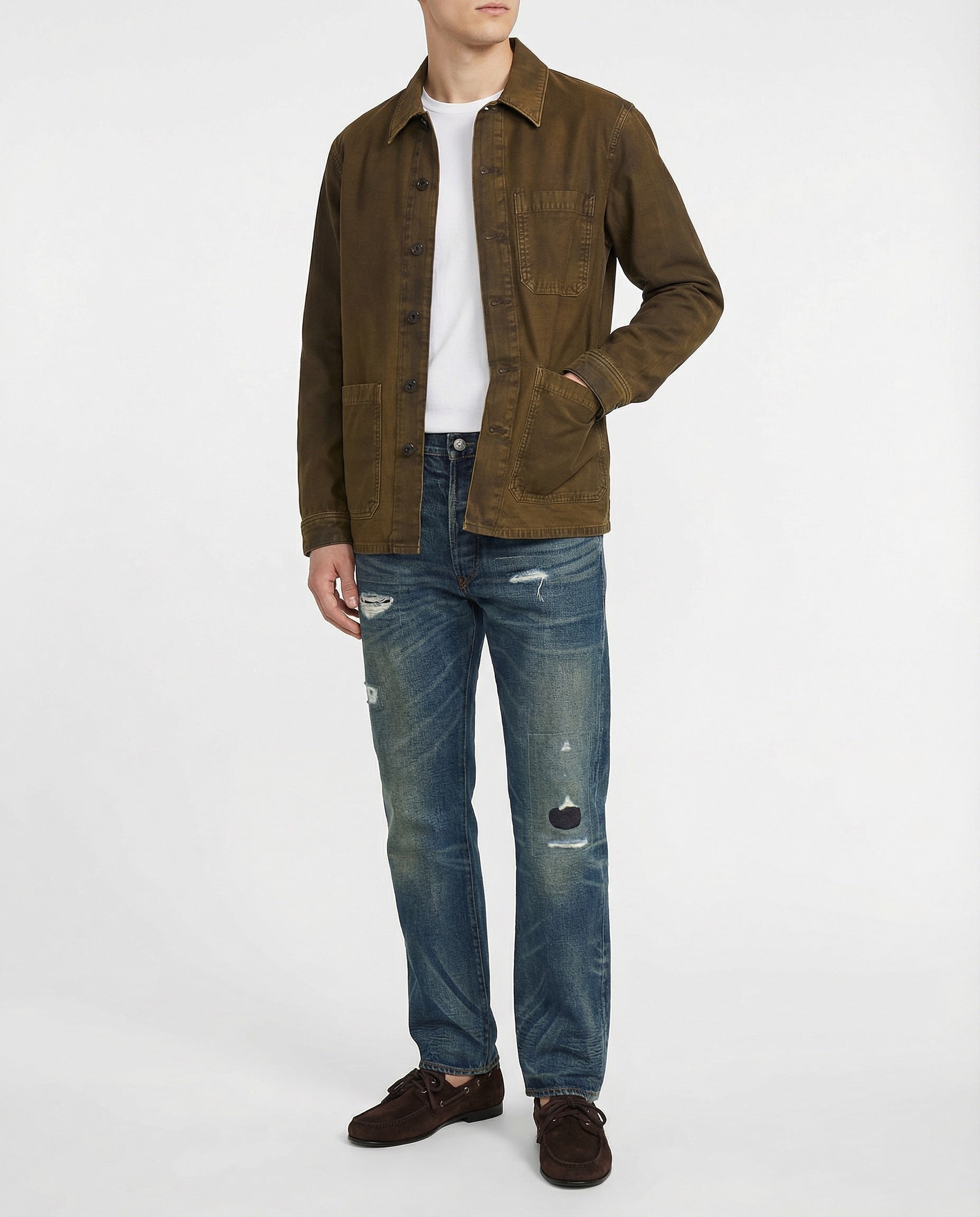 Straight-leg distressed selvedge jeans