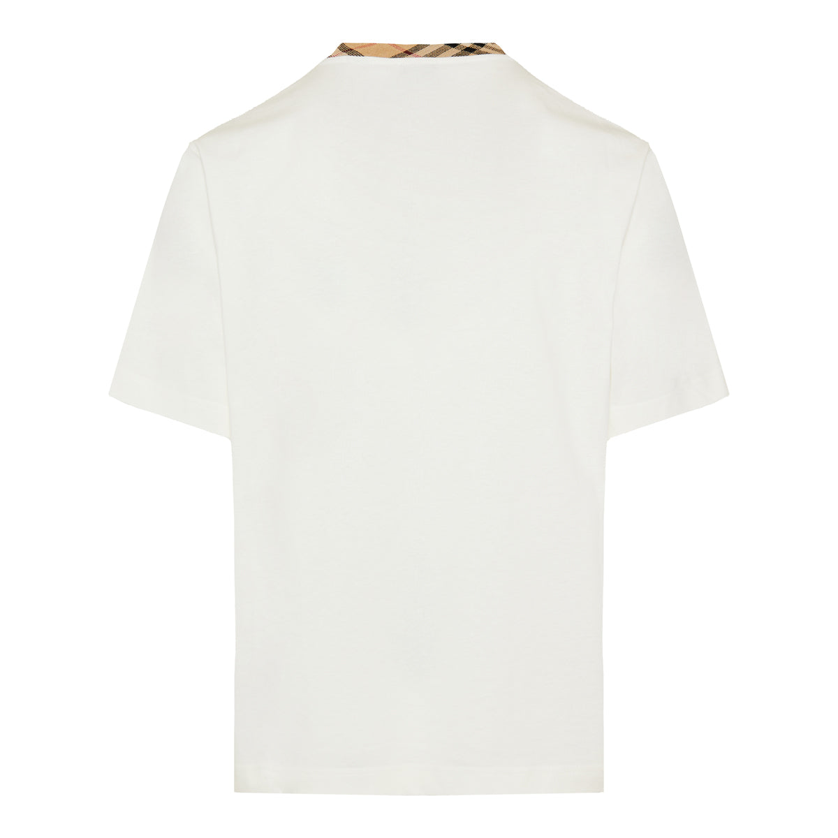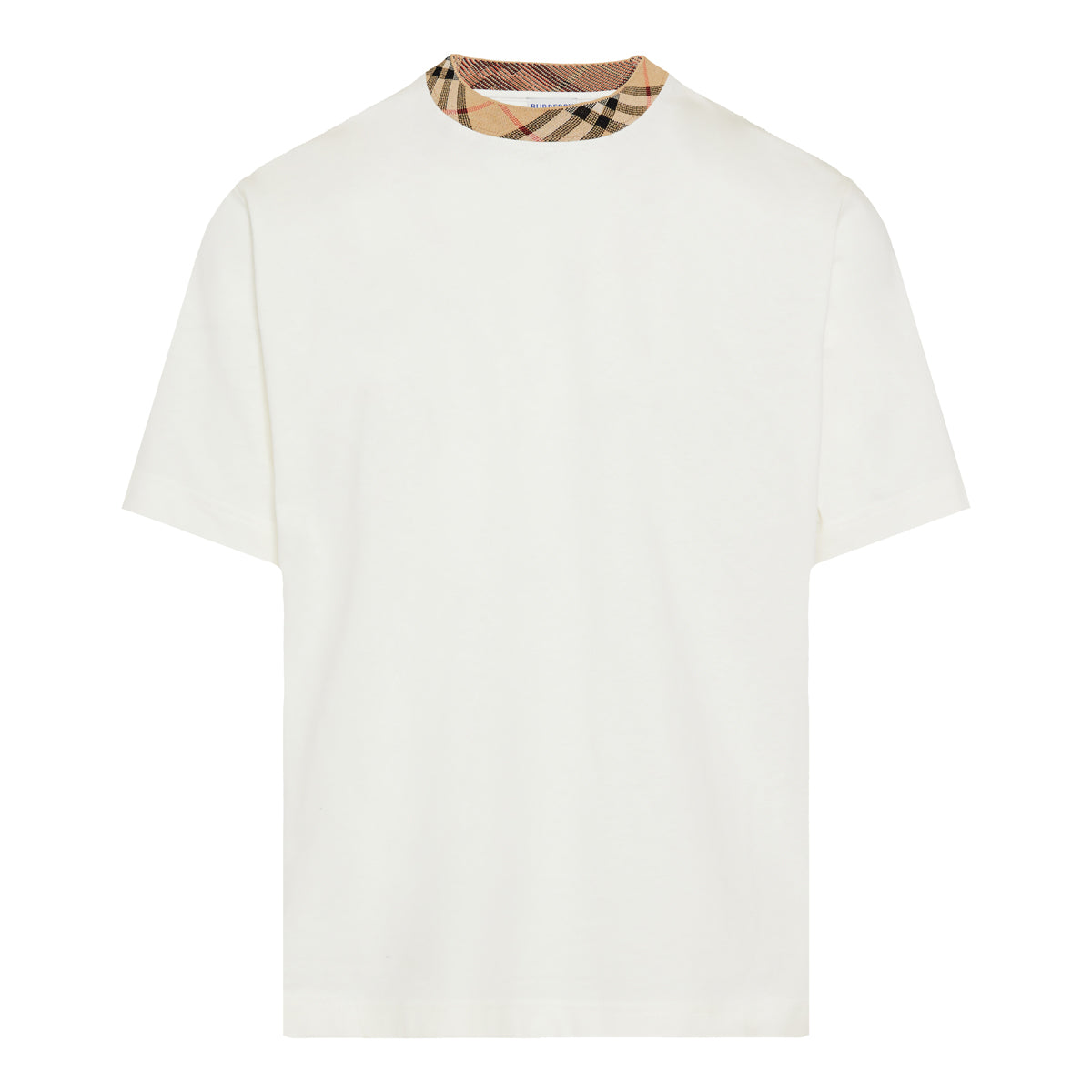 This Burberry t-shirt is crafted from cotton jersey with a relaxed fit, featuring a rib-knit neckline. The design is detailed with Burberry Check taping in our signature sand beige colorway, adding a touch of heritage to a modern silhouette.