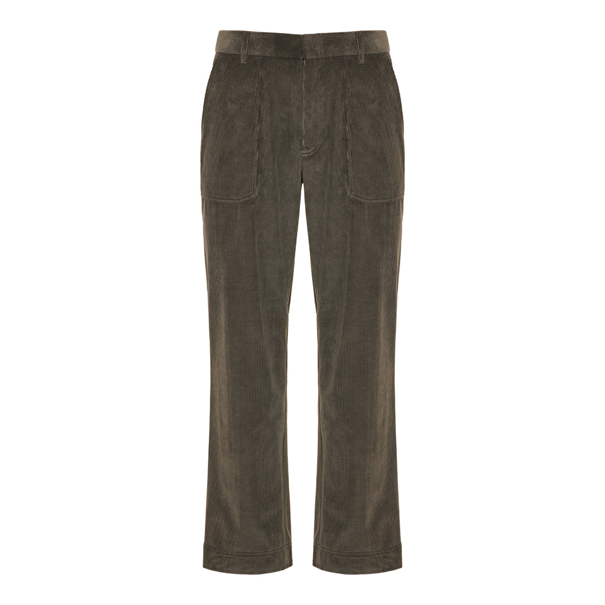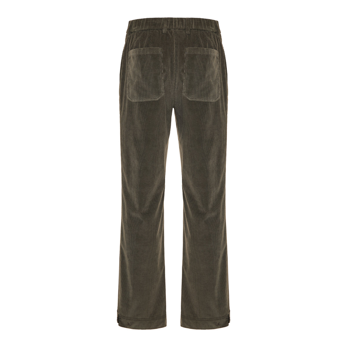 These Brioni trousers are crafted from a luxurious blend of lambskin, cotton, and wool, offering a soft yet structured feel. The design features a concealed front button, hook and zip fastening, belt loops, diagonal side pockets, rear patch pockets, and an adjustable hem. Ideal for formal to semi-formal occasions, these trousers exemplify understated luxury.