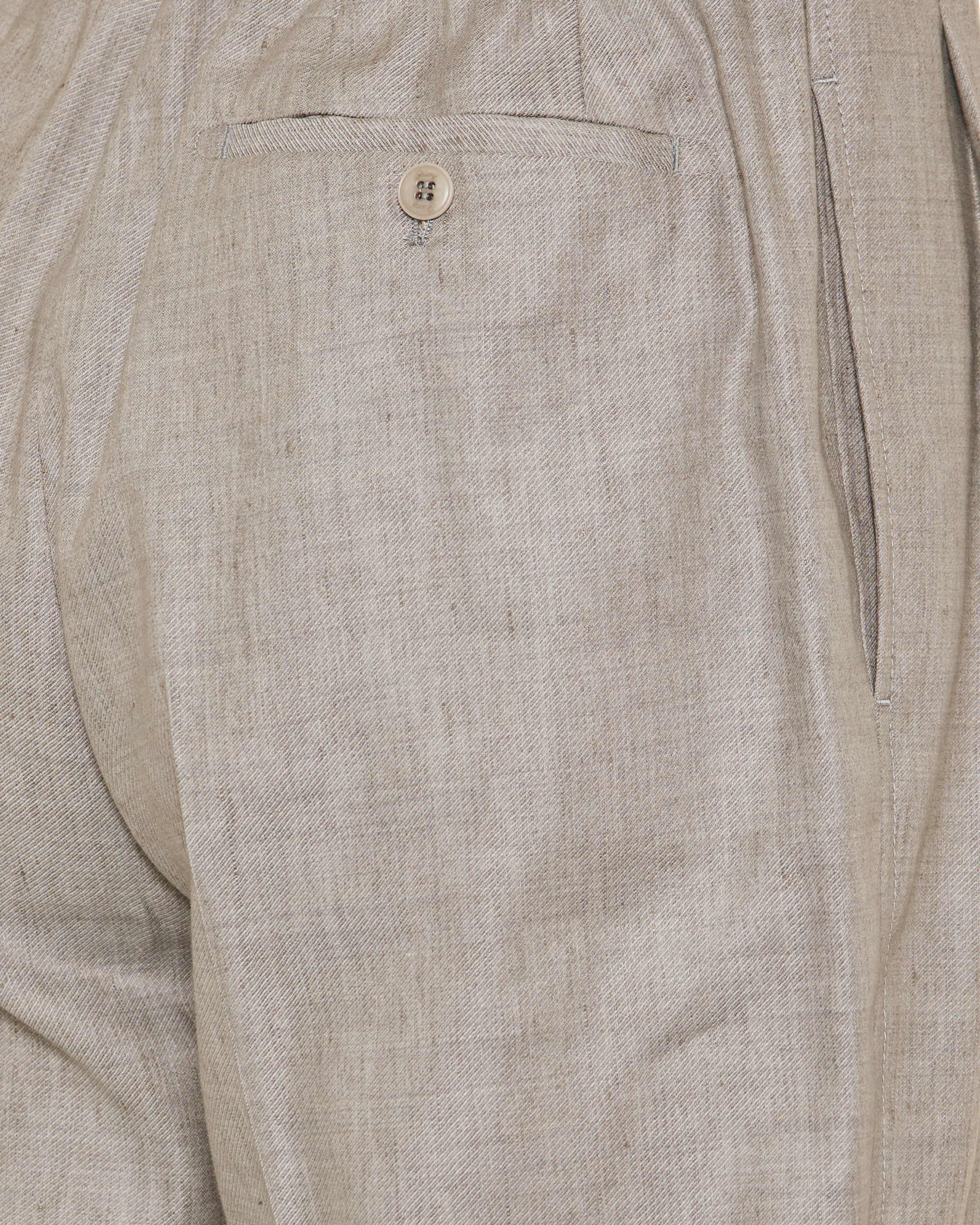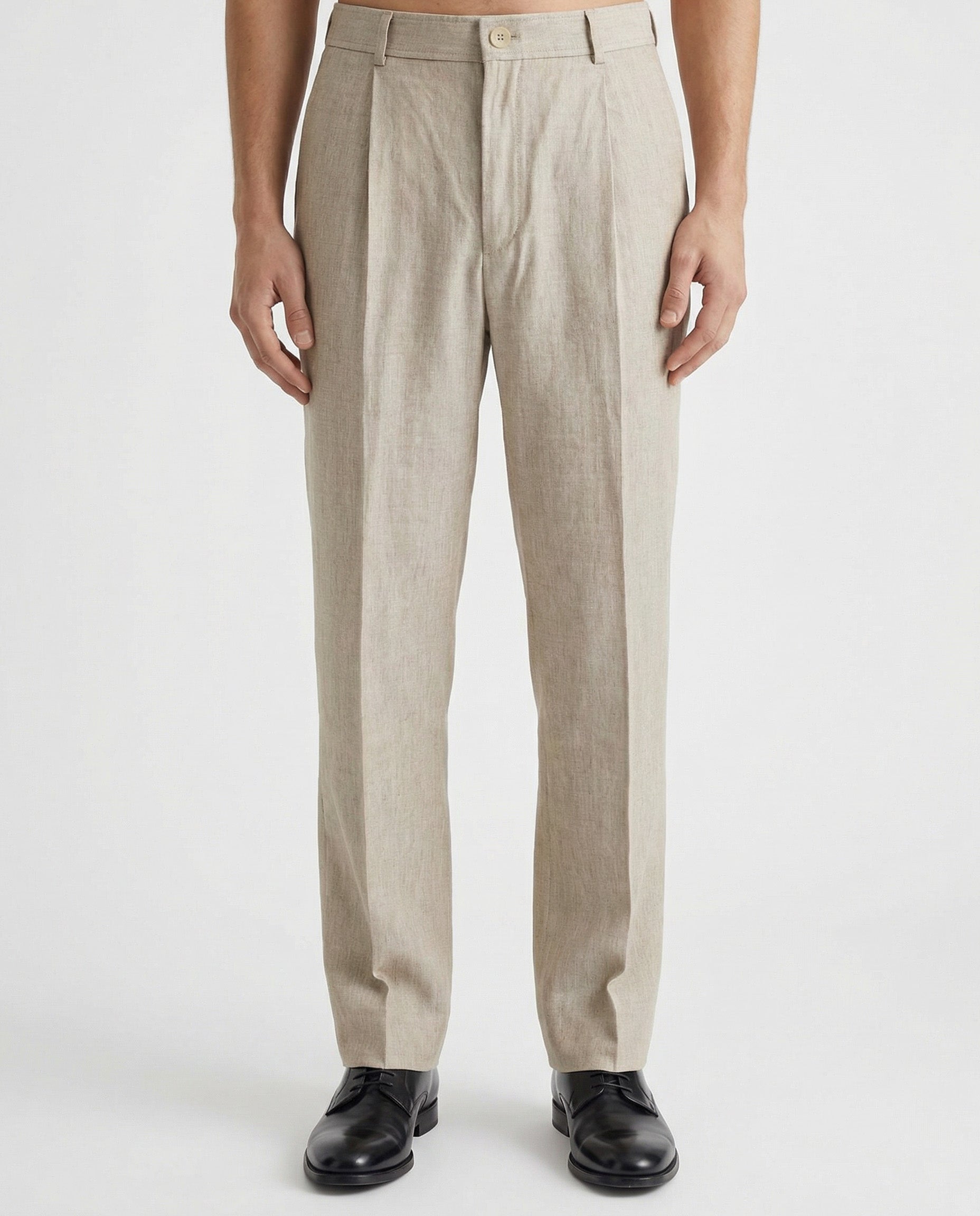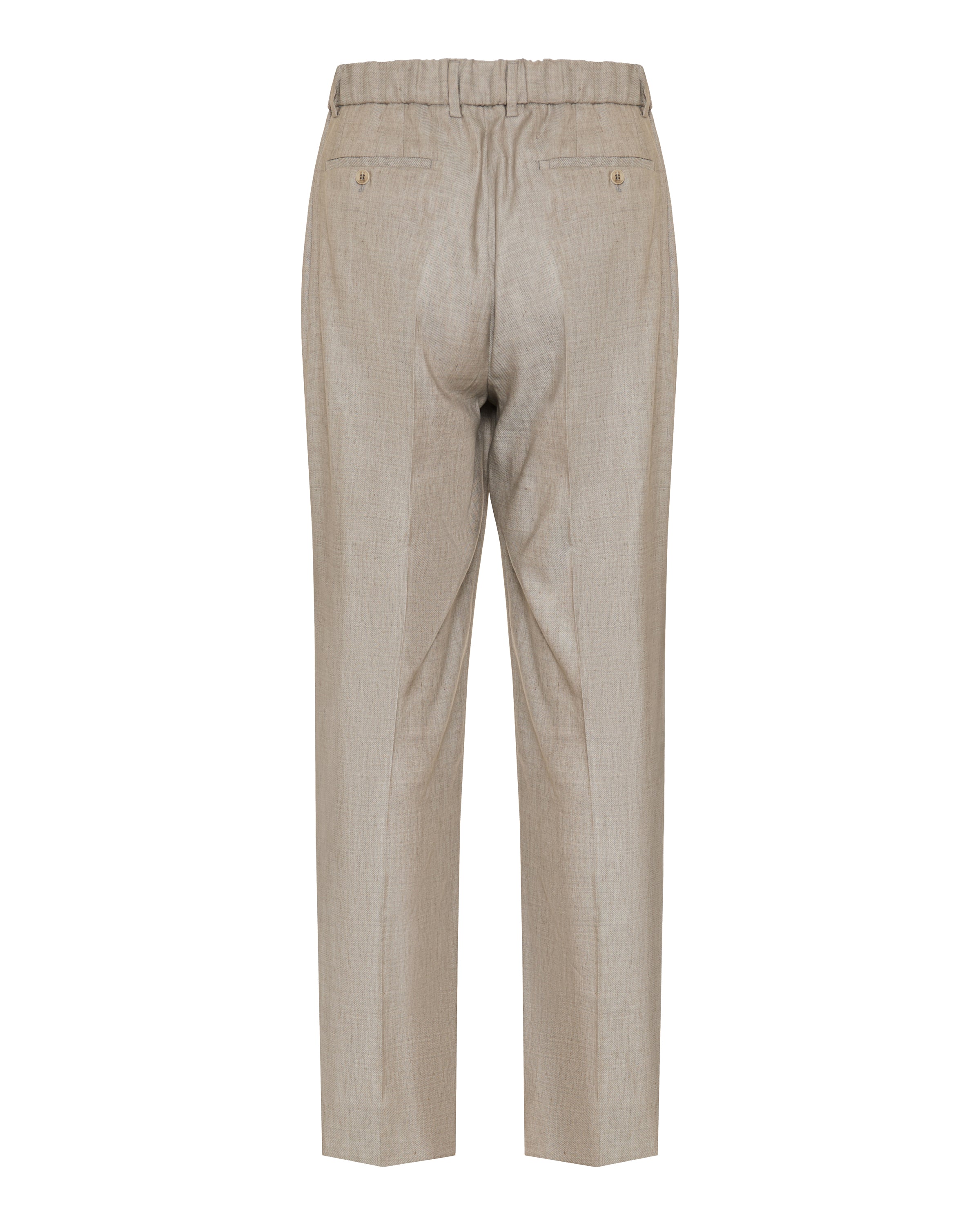 Designed with a refined, contemporary silhouette, these tailored trousers offer a clean, elongated line that balances structure with fluid movement. Crafted from fine wool, they provide natural comfort and breathability while maintaining a polished appearance throughout the day. Elegant and versatile, they are suitable for professional settings, formal occasions, and elevated everyday wear, delivering timeless sophistication with understated precision.