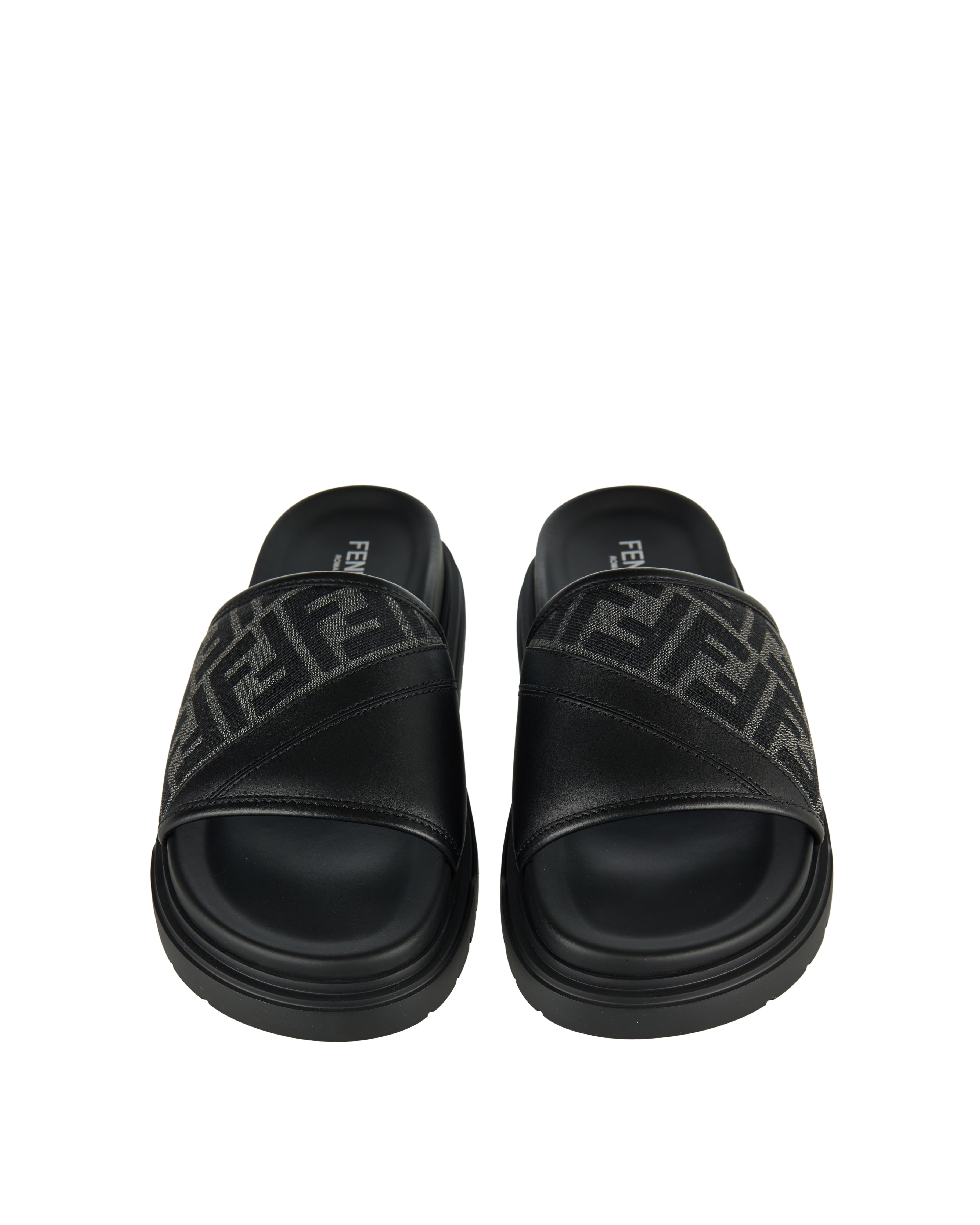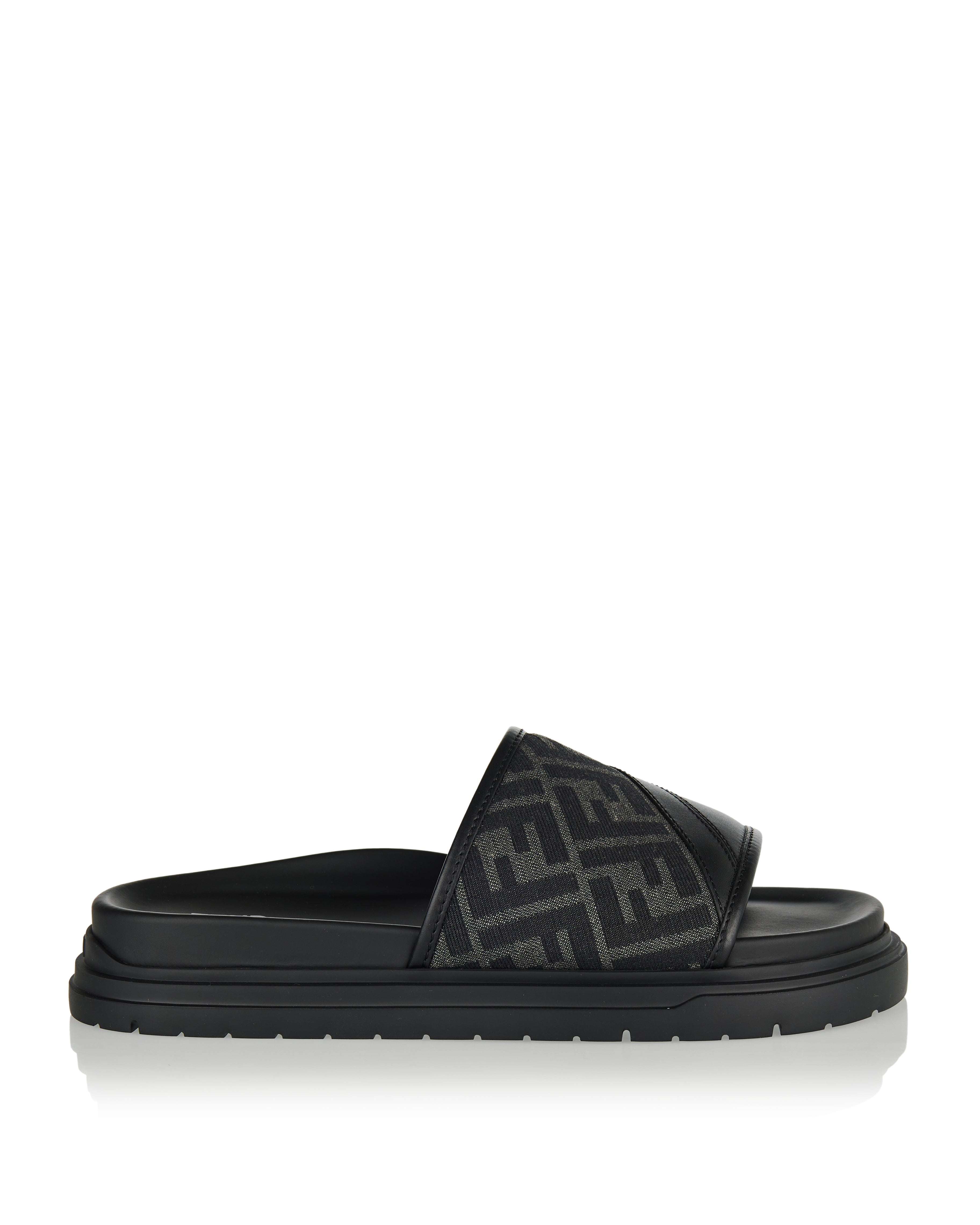 Slip-on slippers crafted from embroidered canvas with smooth leather trims, defined by the iconic diagonal motif for a bold yet effortless statement.- Embroidered canvas upper