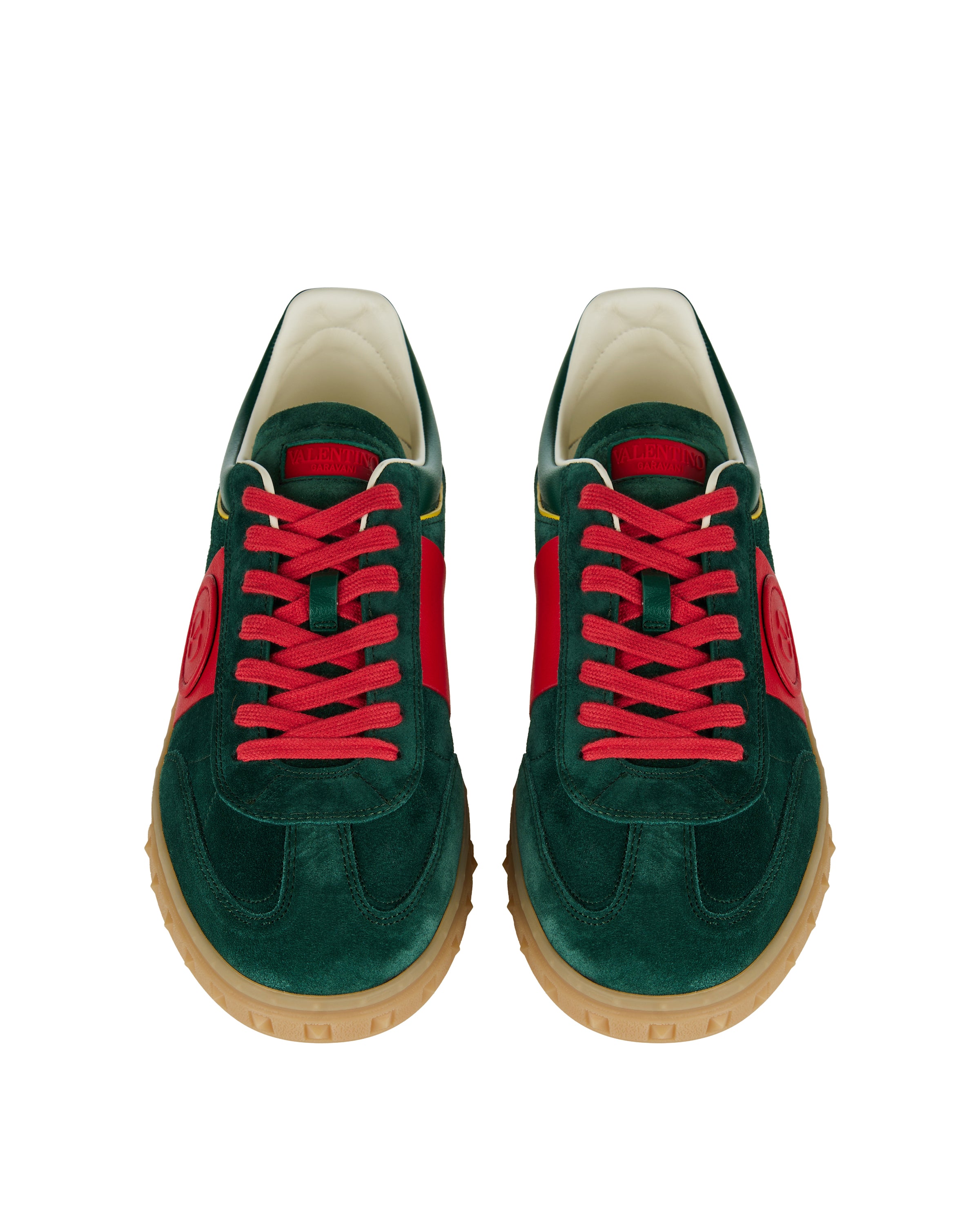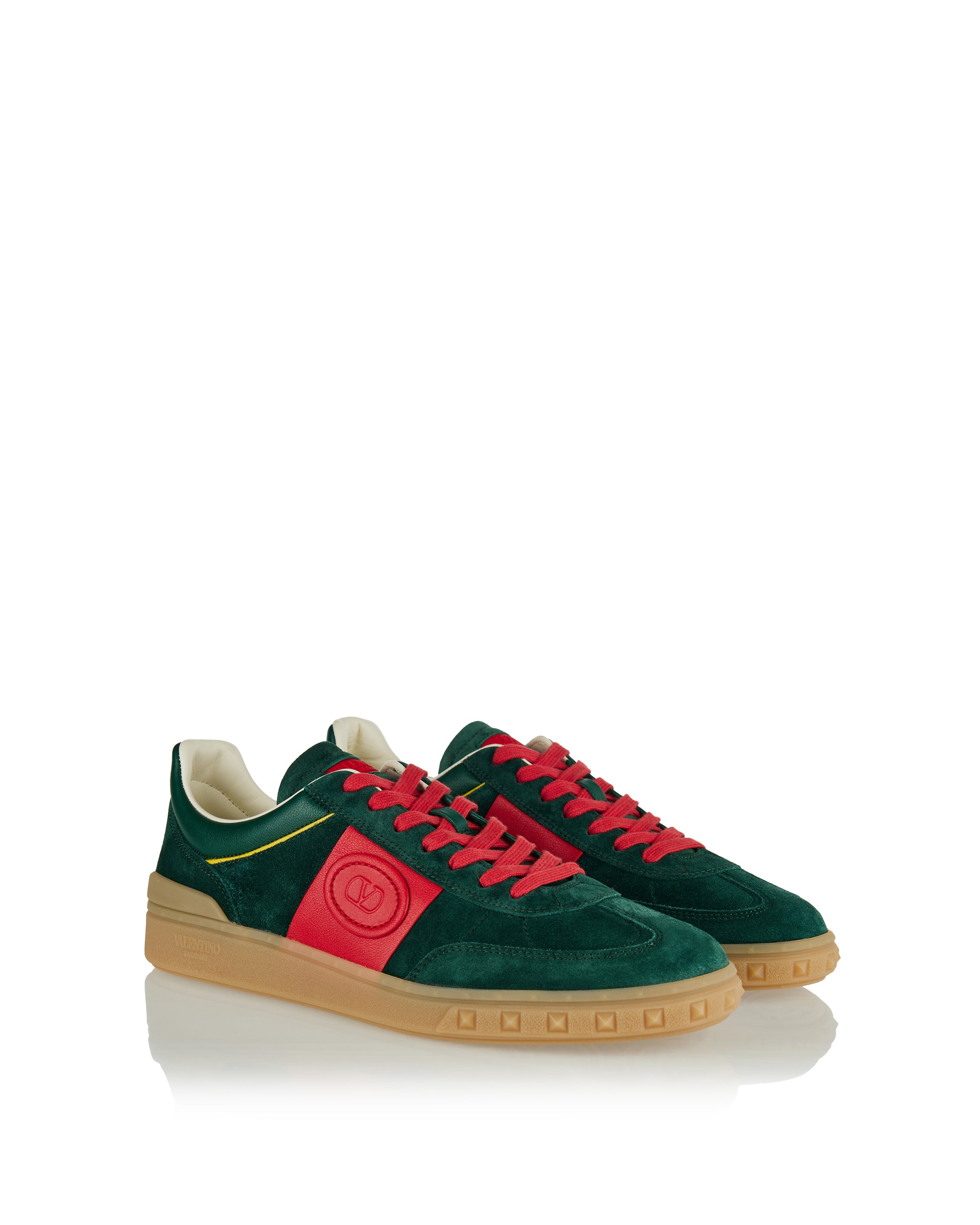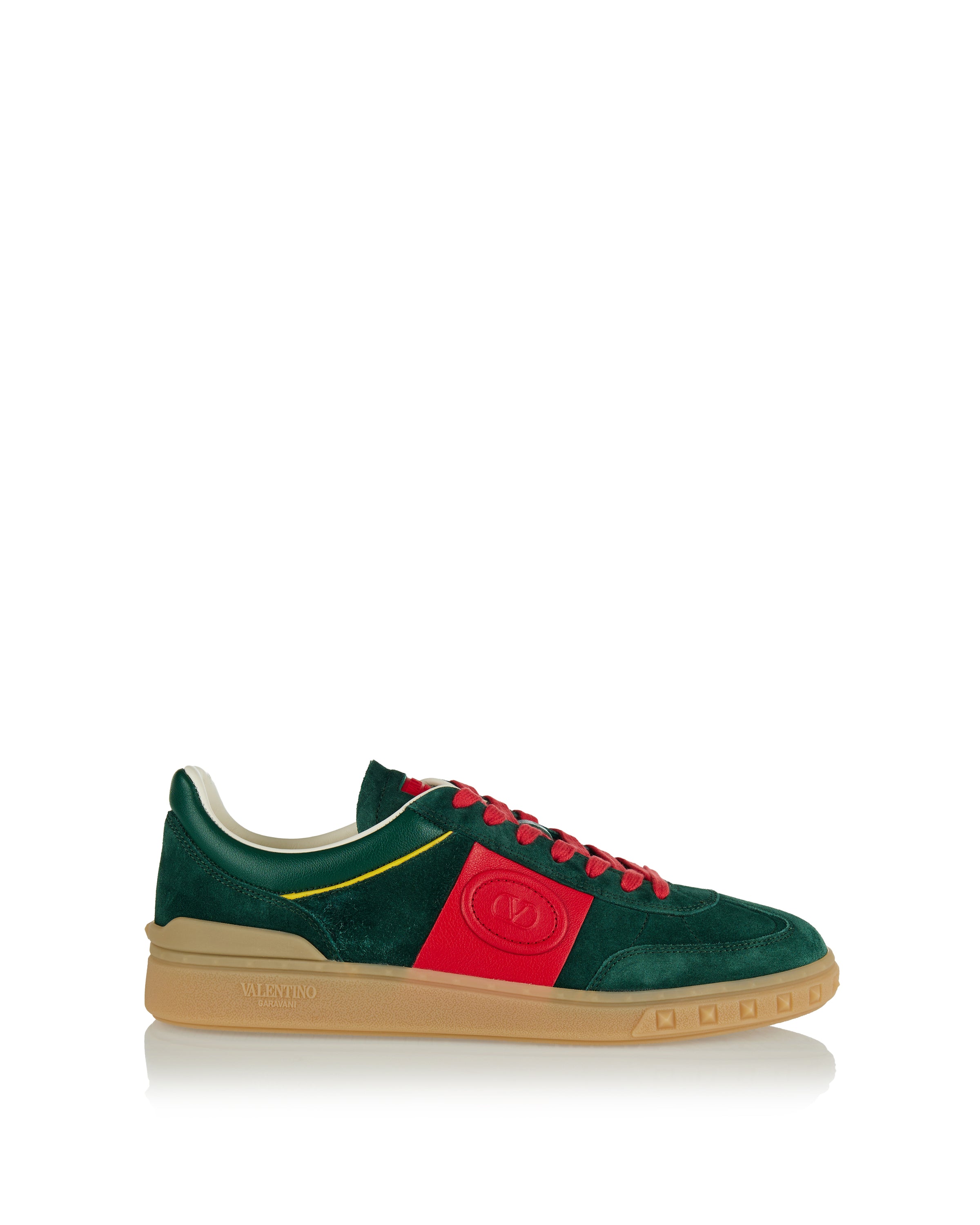 Refined Valentino Garavani Upvillage suede sneakers in rich green suede with contrasting leather trims and the iconic debossed VLogo at the sides, set on a premium rubber sole. Designed for elevated casual and city wardrobes, they blend Italian craftsmanship with vintage-inspired details for timeless everyday luxury.