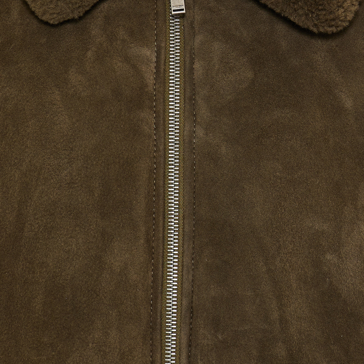Saint Laurent’s bomber jacket in suede and shearling combines luxurious materials with classic design. Featuring a shearling collar, zip front, welt pockets, and ribbed trims, this jacket offers both style and warmth. Made in Italy.