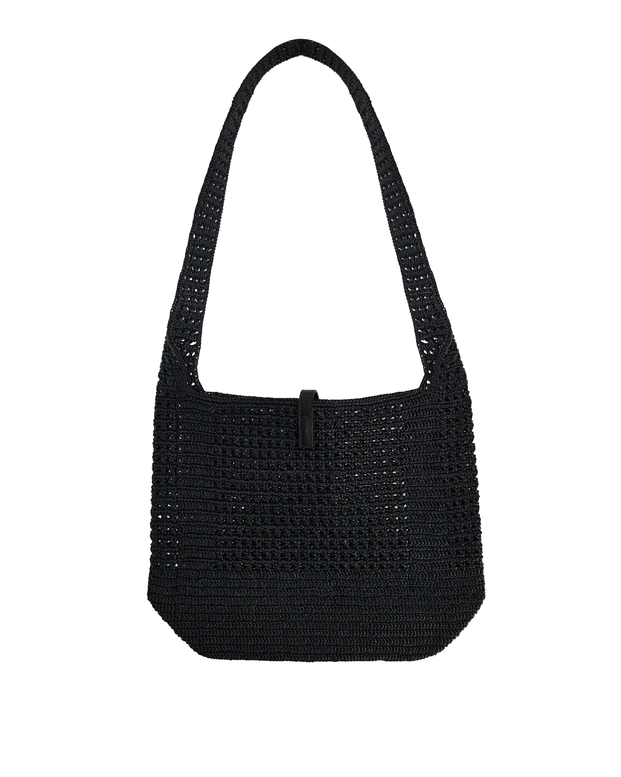 Medium tote crafted in woven raffia, defined by its relaxed silhouette and signature hardware detail. A lightweight, summer-ready essential that balances effortless texture with refined structure.- Woven raffia construction