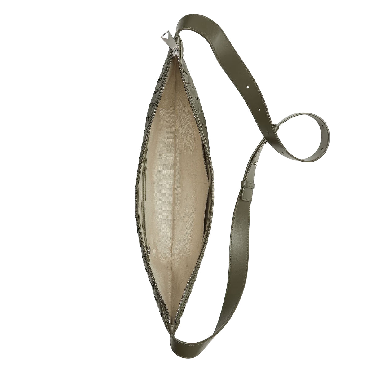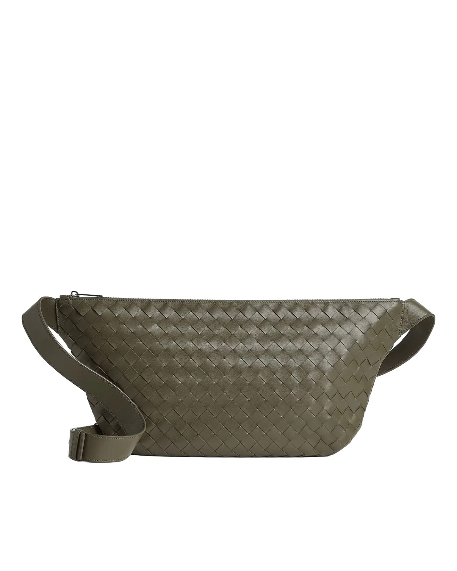 A sophisticated sling bag crafted with the house’s signature weaving technique and luxurious crocodile-textured leather. The sleek, elongated silhouette and adjustable shoulder strap give it a versatile, refined character. Functional yet elegant, it is ideal for urban daywear or elegant travel settings, offering understated luxury and practicality.