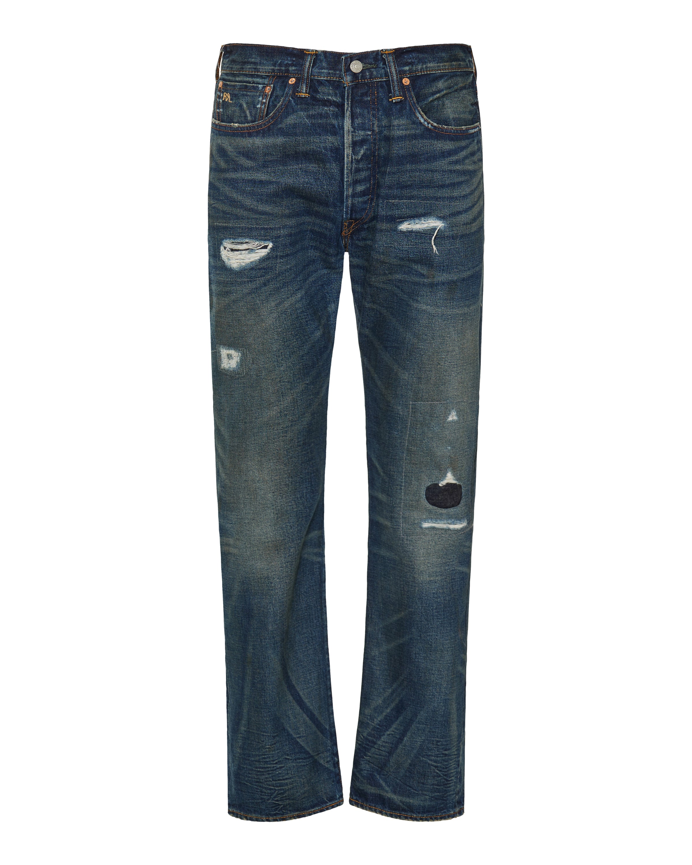 Straight-leg distressed selvedge jeans