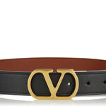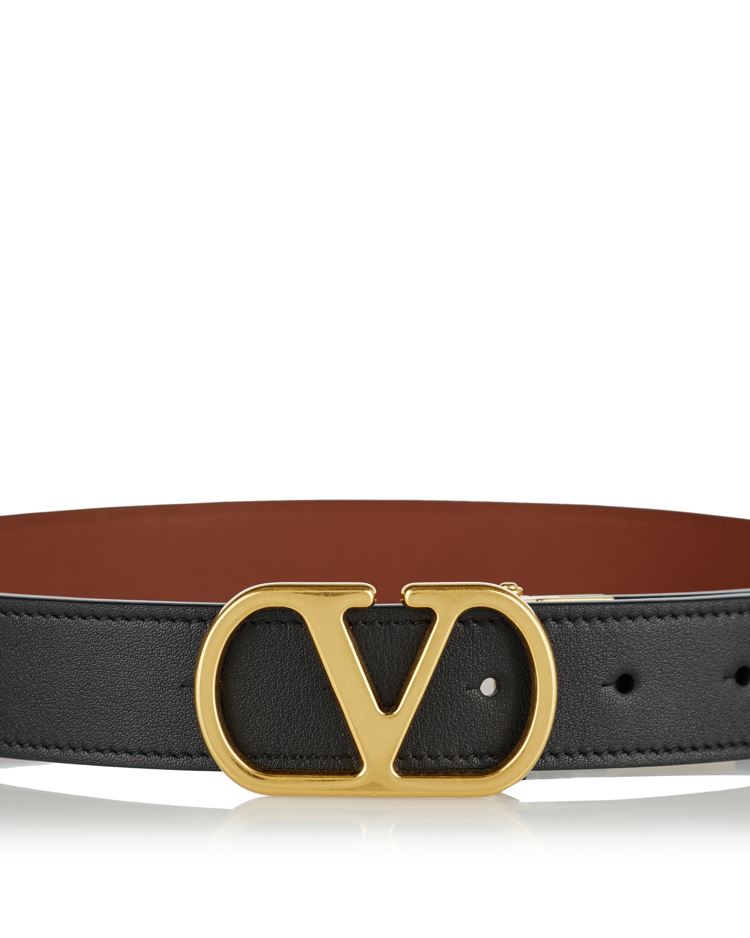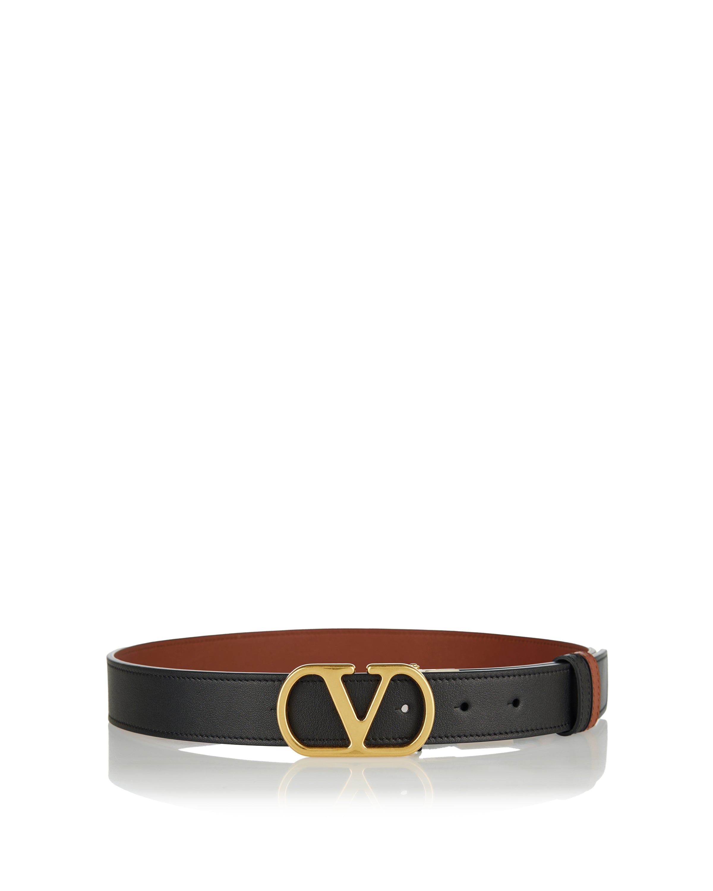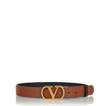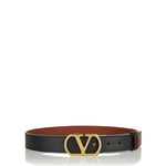 Reversible leather belt crafted from glossy calfskin, defined by the iconic VLogo Signature buckle for versatile, polished styling.