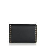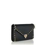 A compact crossbody bag crafted from smooth leather, defined by signature stud detailing and a structured, modern silhouette.