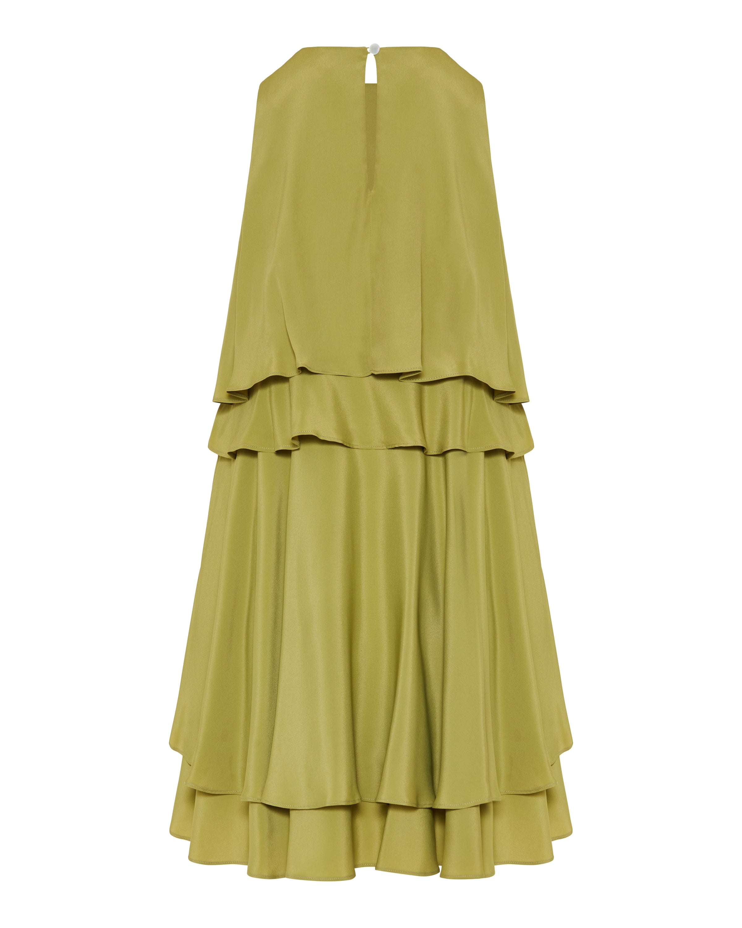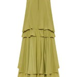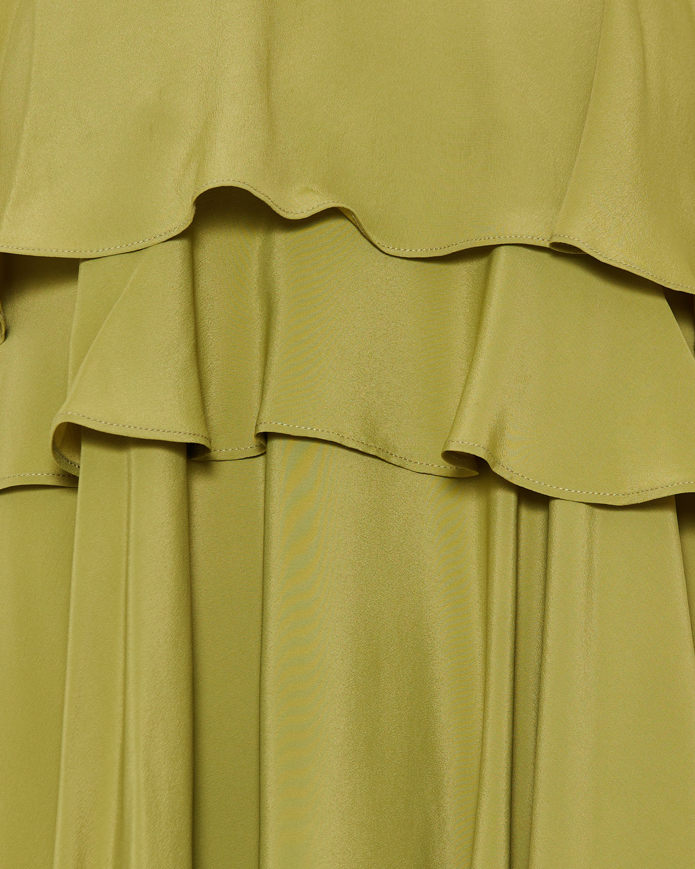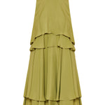 Flowing midi dress crafted from a silk-blend fabric, defined by a layered, tiered silhouette that moves effortlessly with refined elegance.