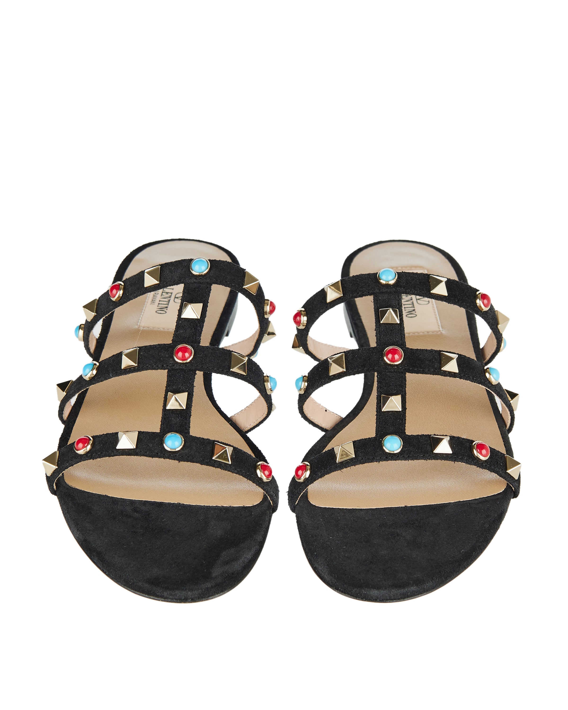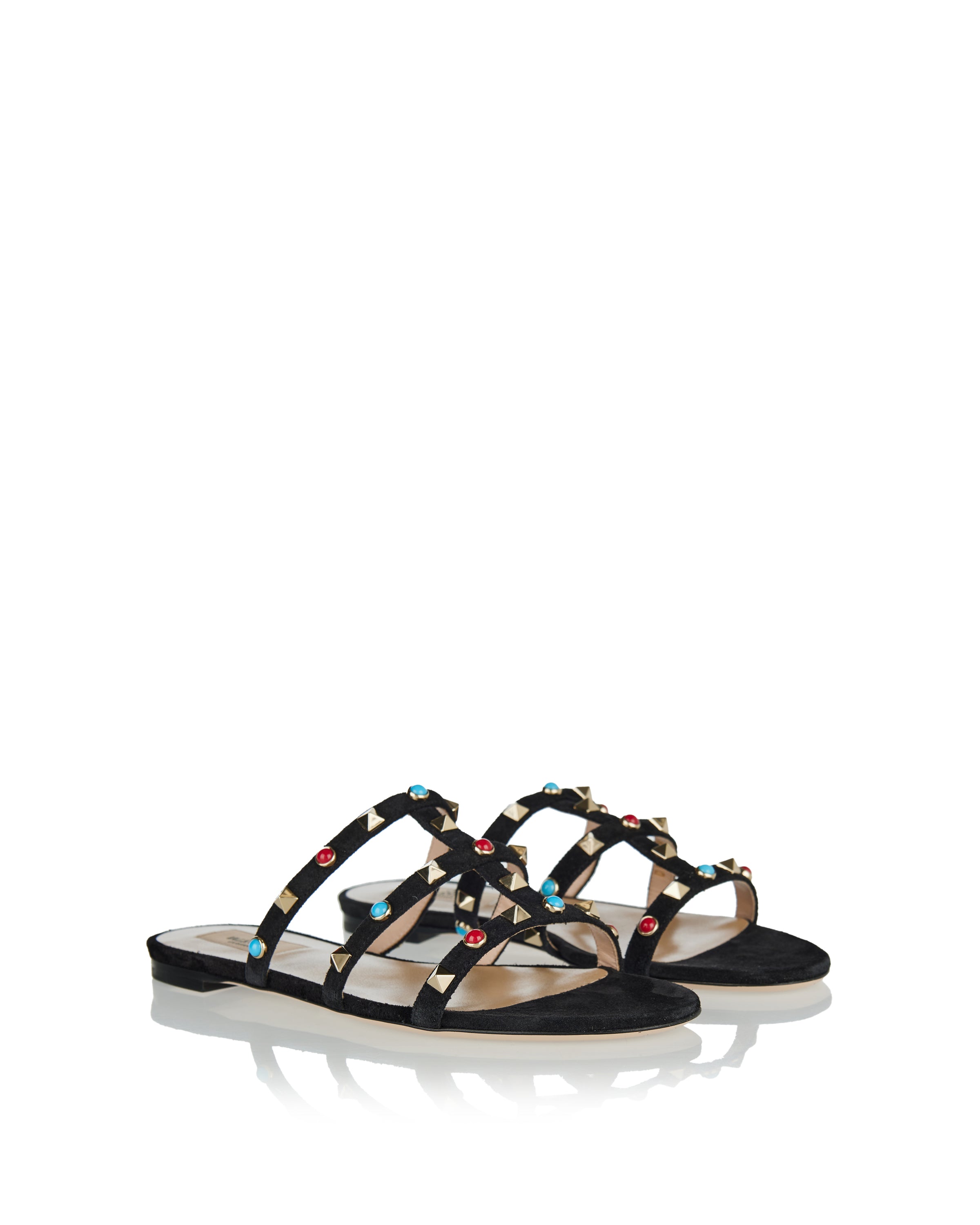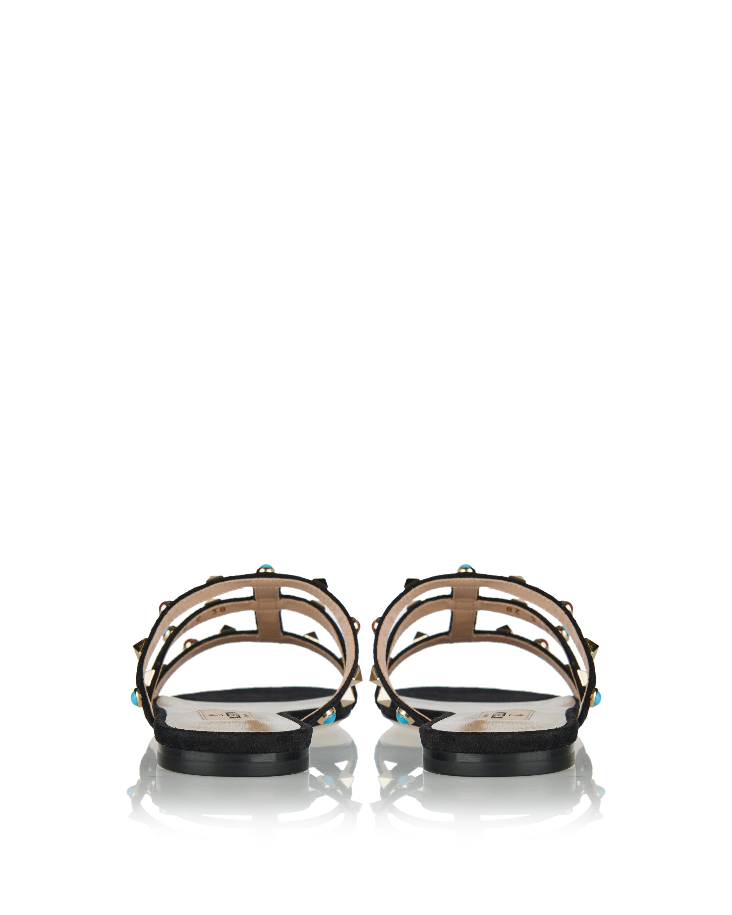 Slide sandals crafted from soft suede with sculptural straps and bead detailing, offering a modern, elevated silhouette.