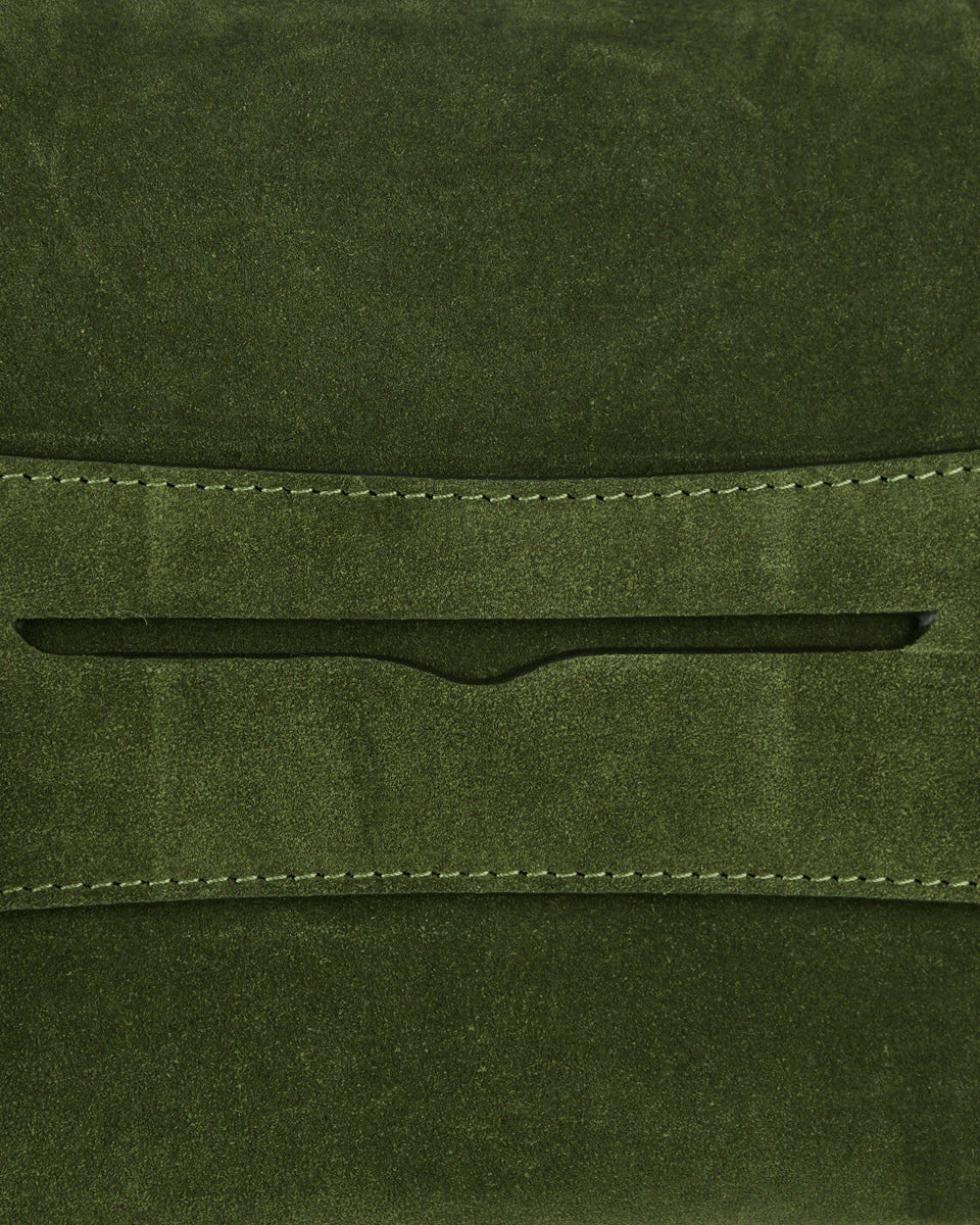 Soft khaki suede construction with a luxurious, tactile feel