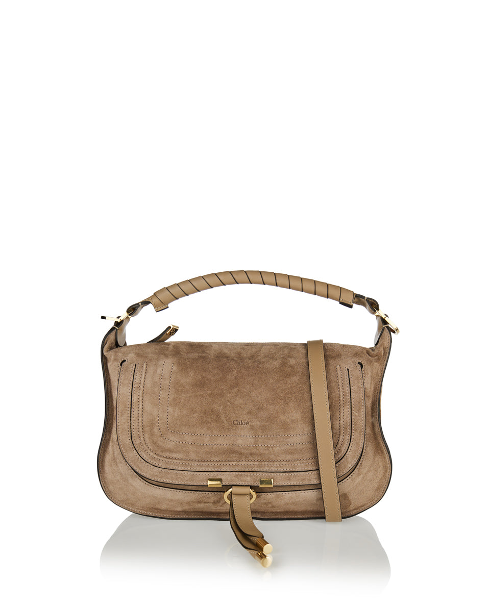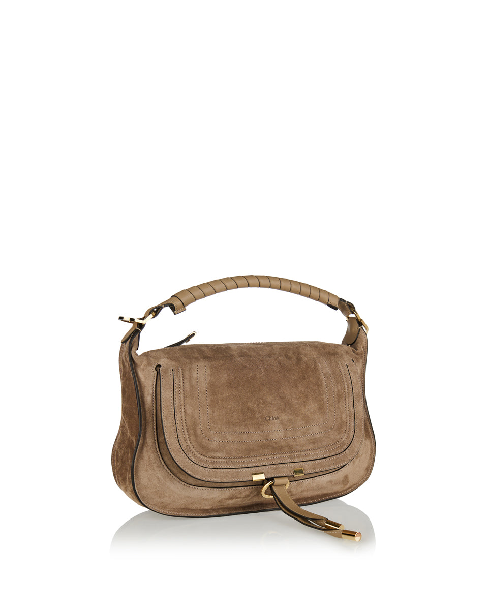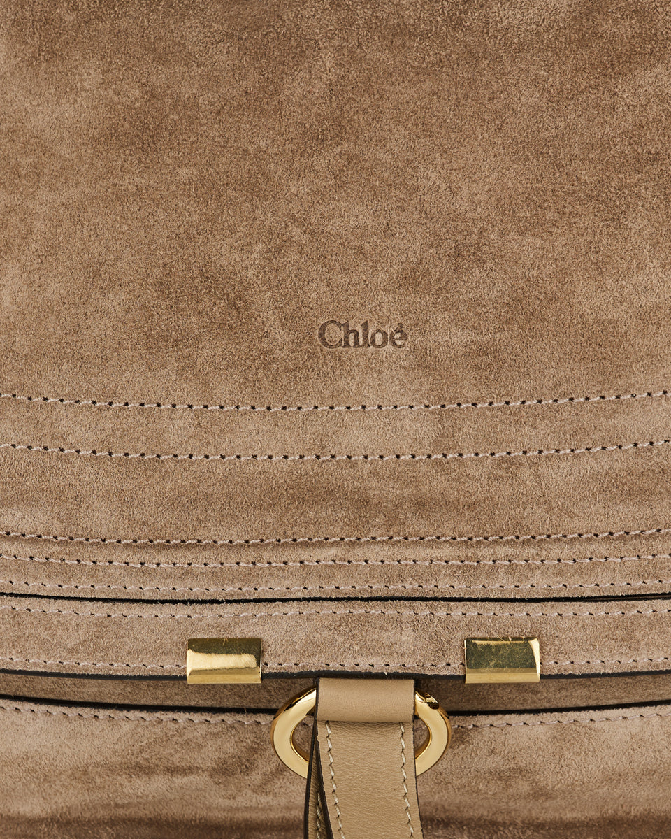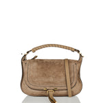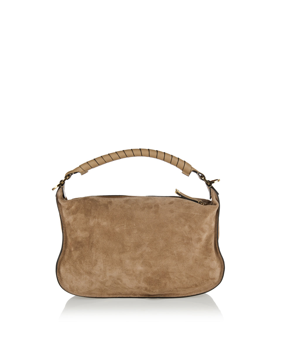 A refined shoulder bag crafted from soft suede, defined by Chloé’s signature curved flap and artisanal stitching.