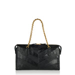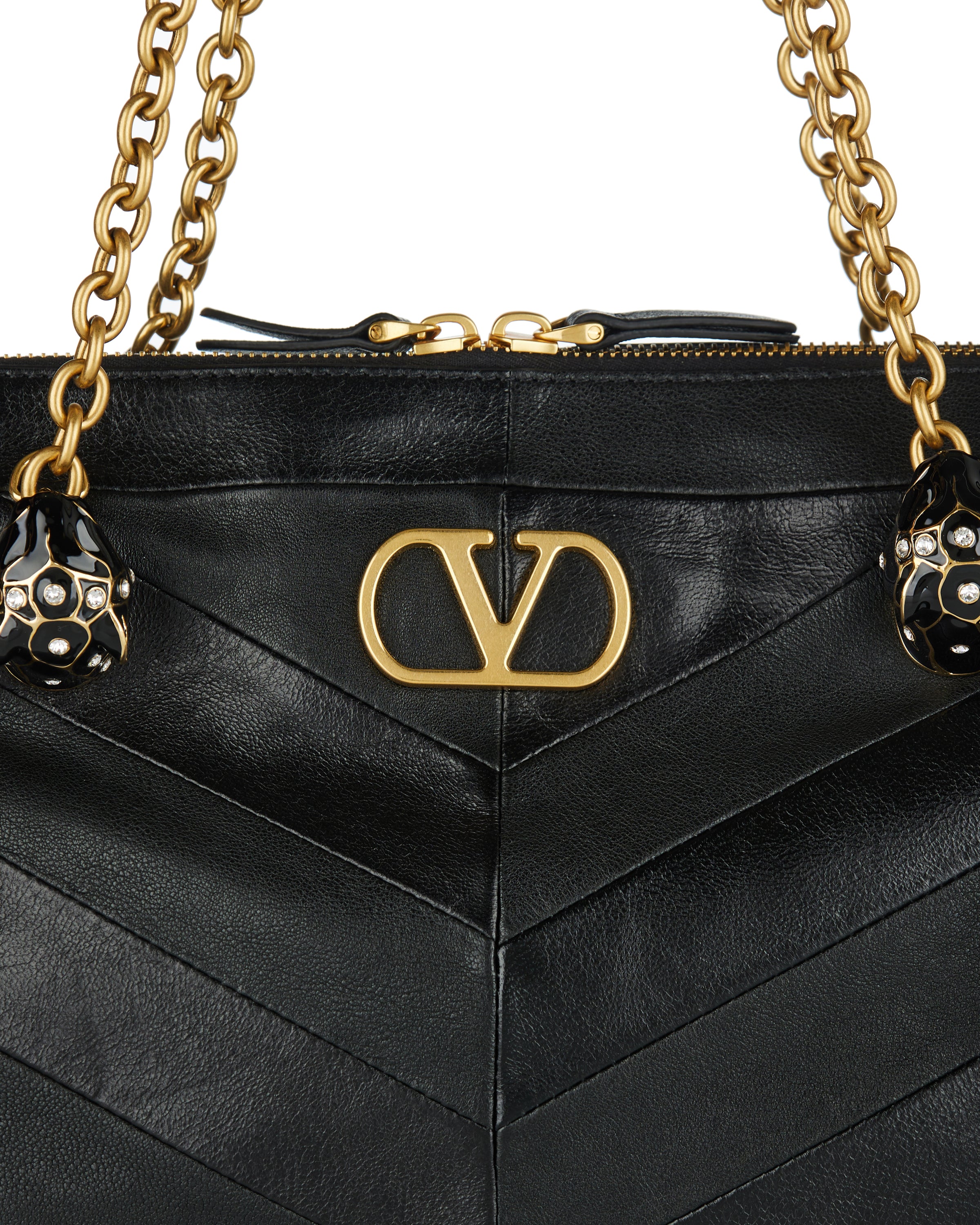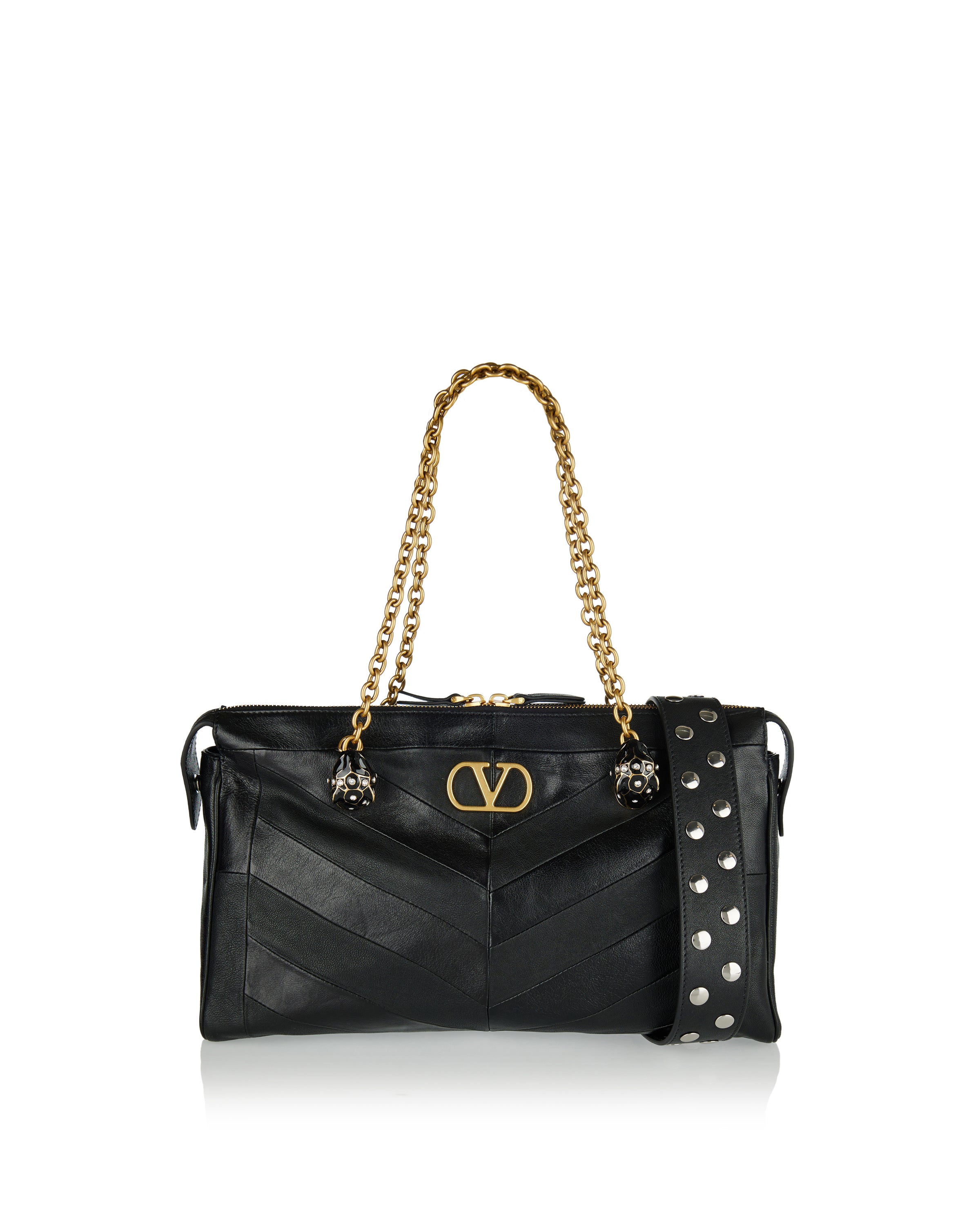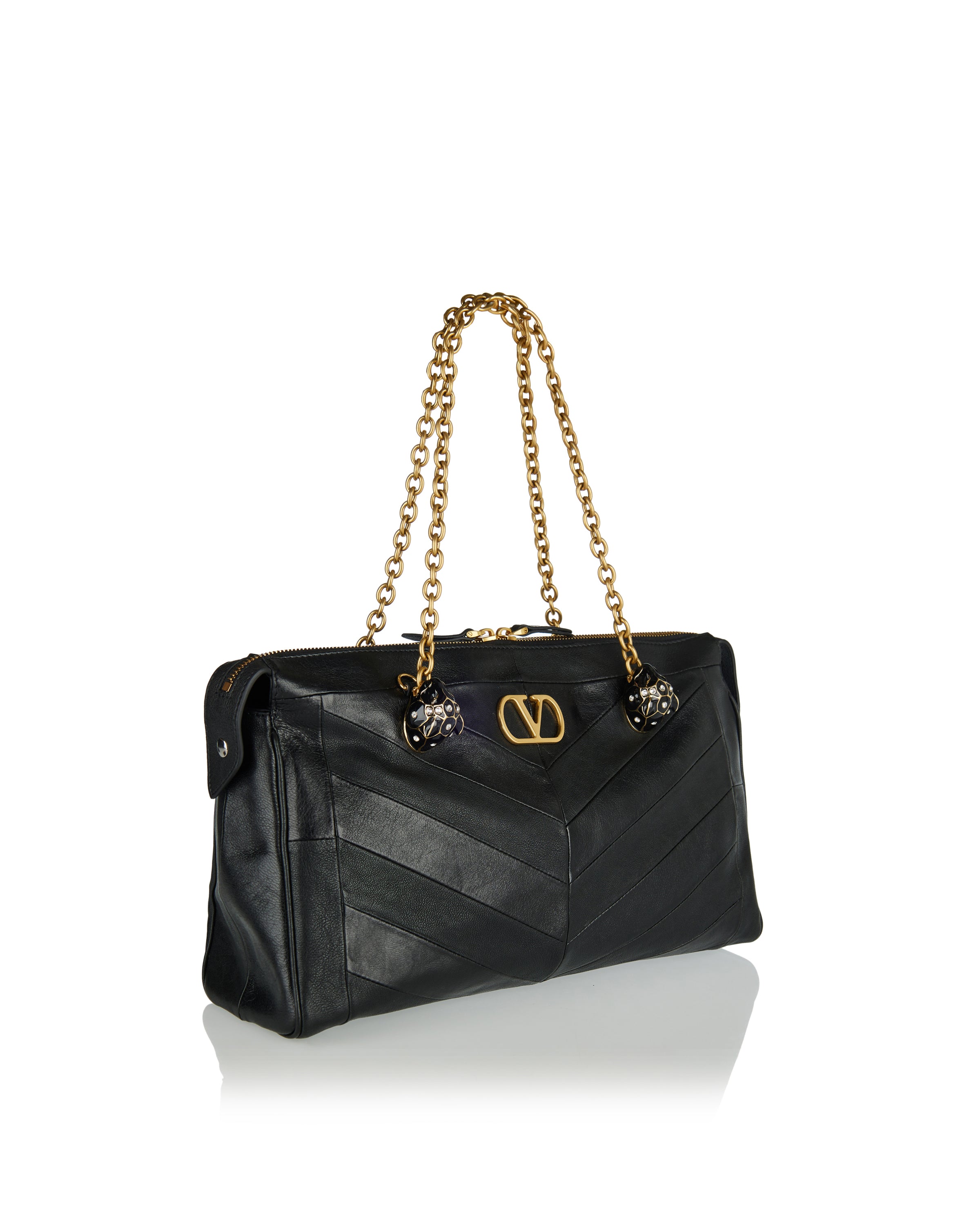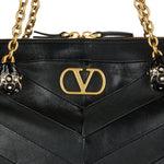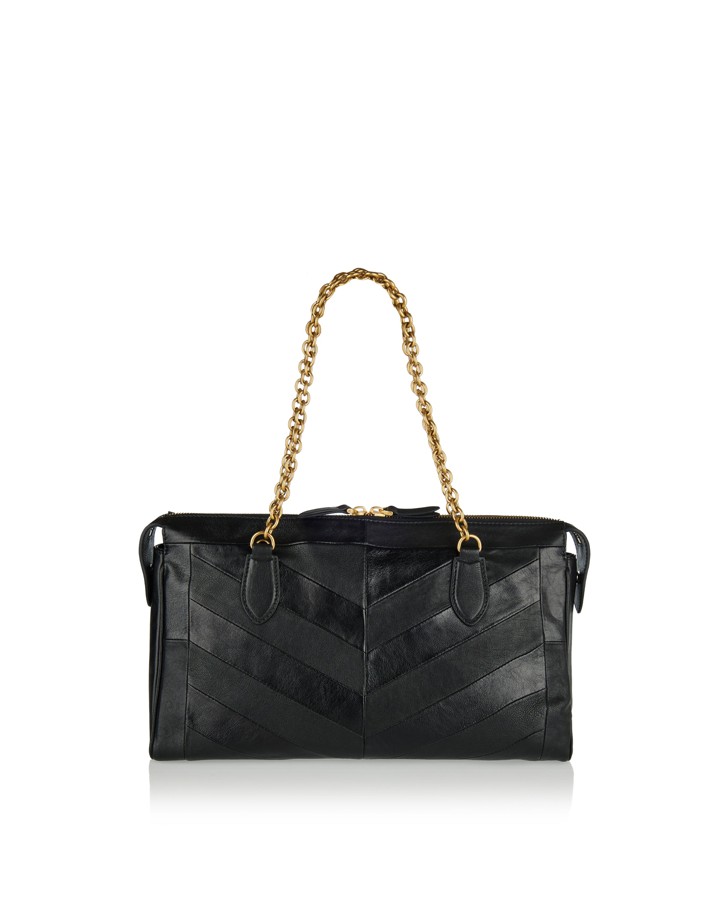 A structured shoulder bag crafted from smooth leather, defined by a chevron motif and a sculpted silhouette that balances precision with softness.