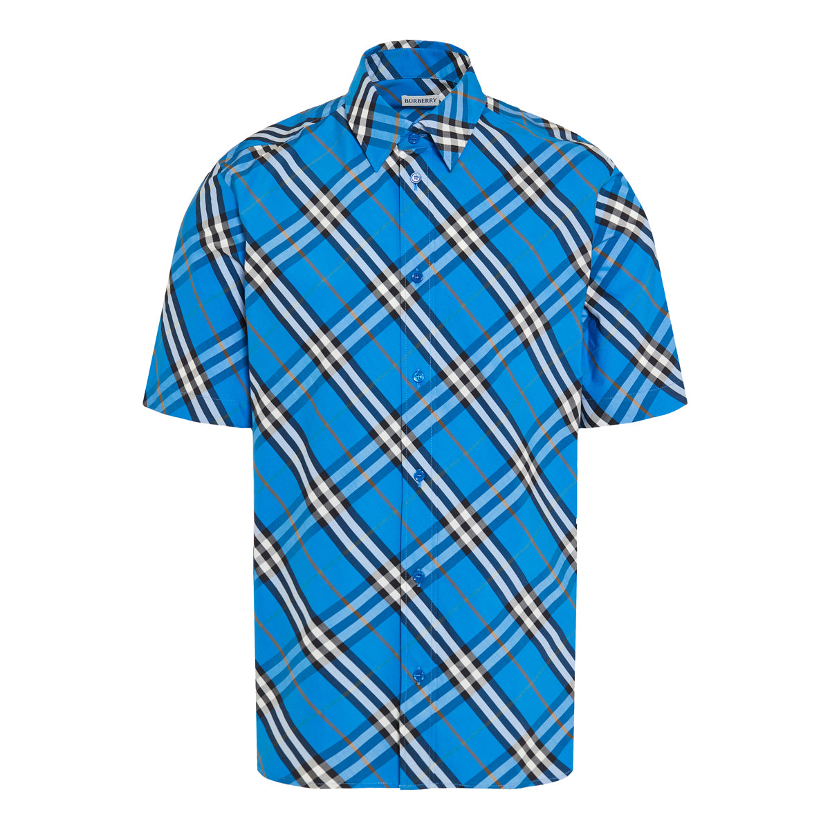 This short-sleeved shirt from Burberry is crafted from cotton woven in Italy and features the iconic Burberry Check. Designed with a regular fit, it offers a classic silhouette suitable for both casual and semi-formal occasions. The shirt is finished with a point collar, button closure, and a curved hem, embodying Burberry's commitment to quality and timeless style.