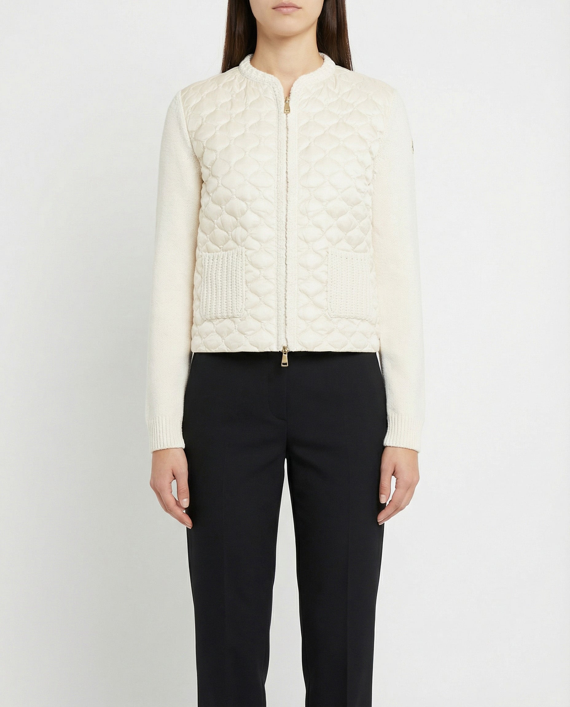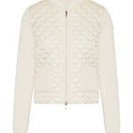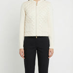 Geometric-quilted padded zip-up cardigan