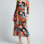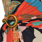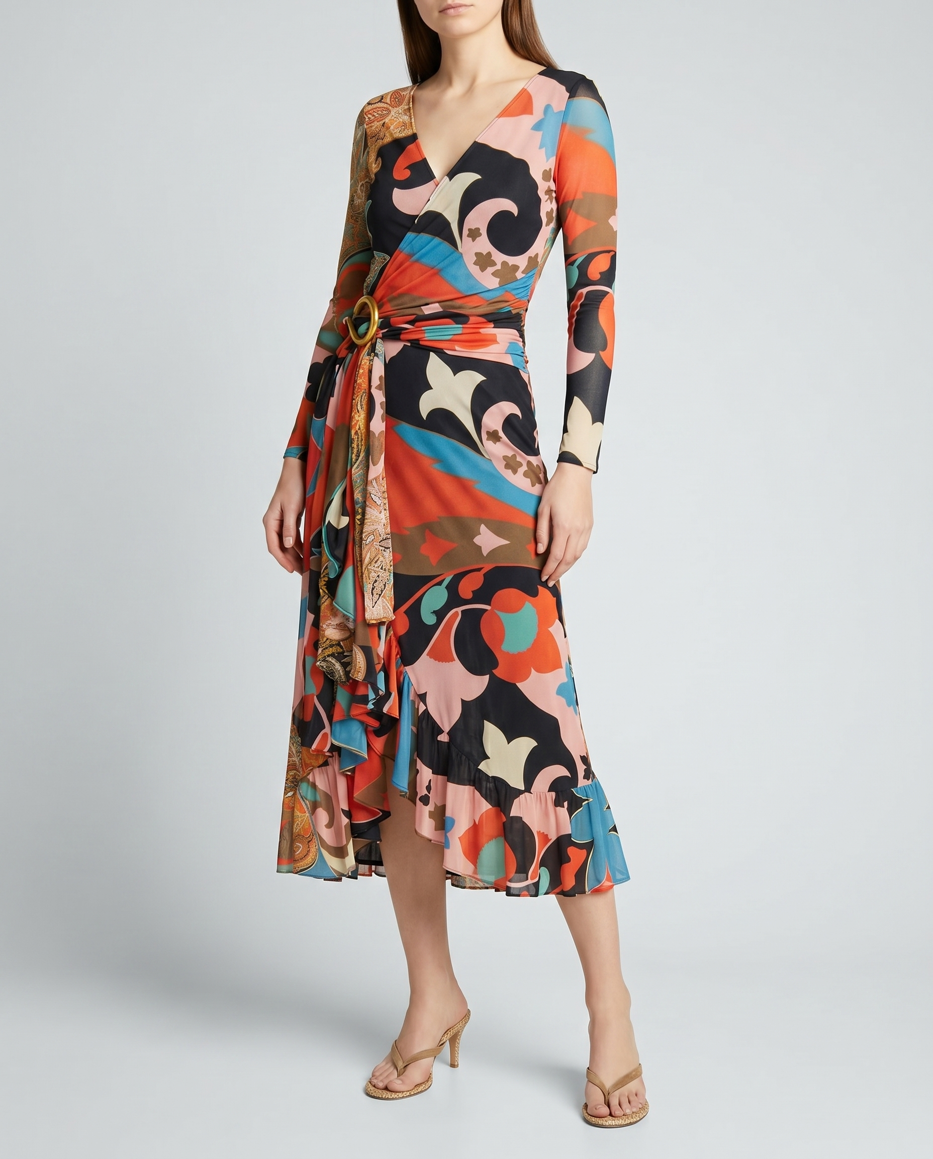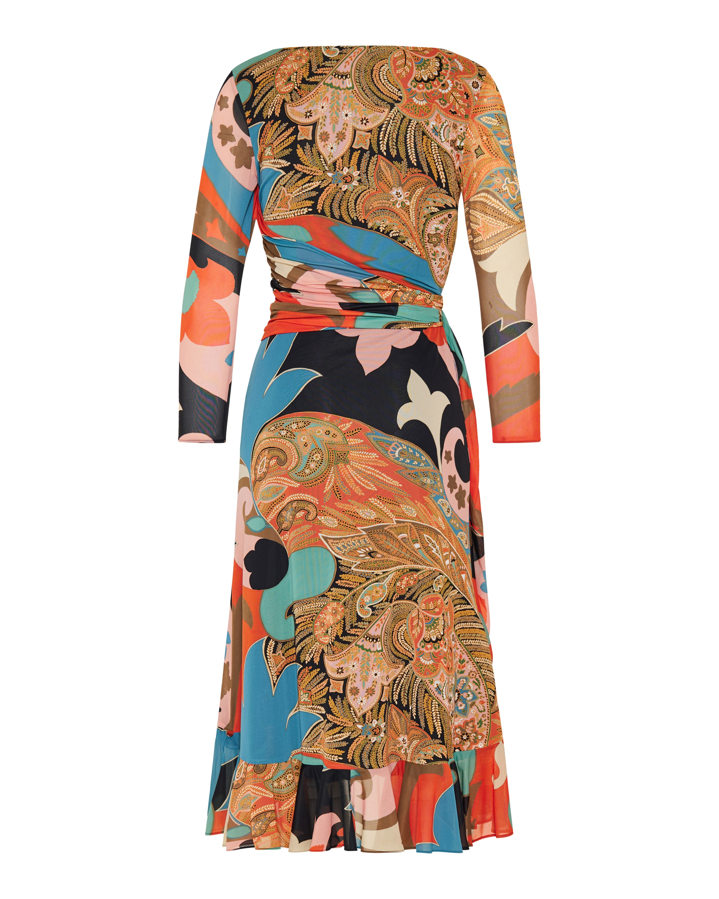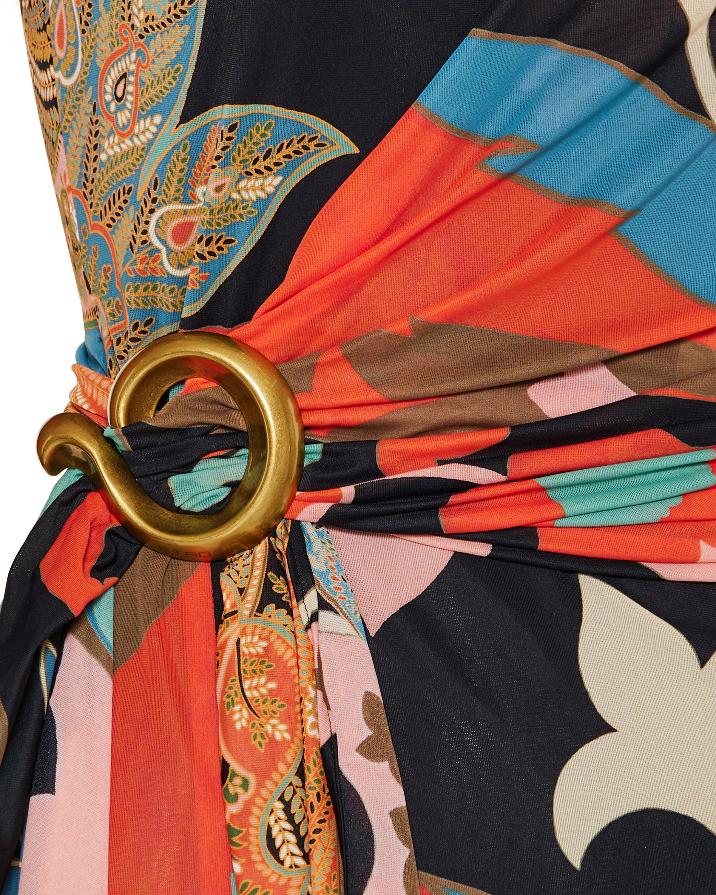 A fluid midi dress crafted in lightweight fabric, featuring an all-over floral paisley motif and a softly draped silhouette for effortless elegance.