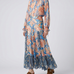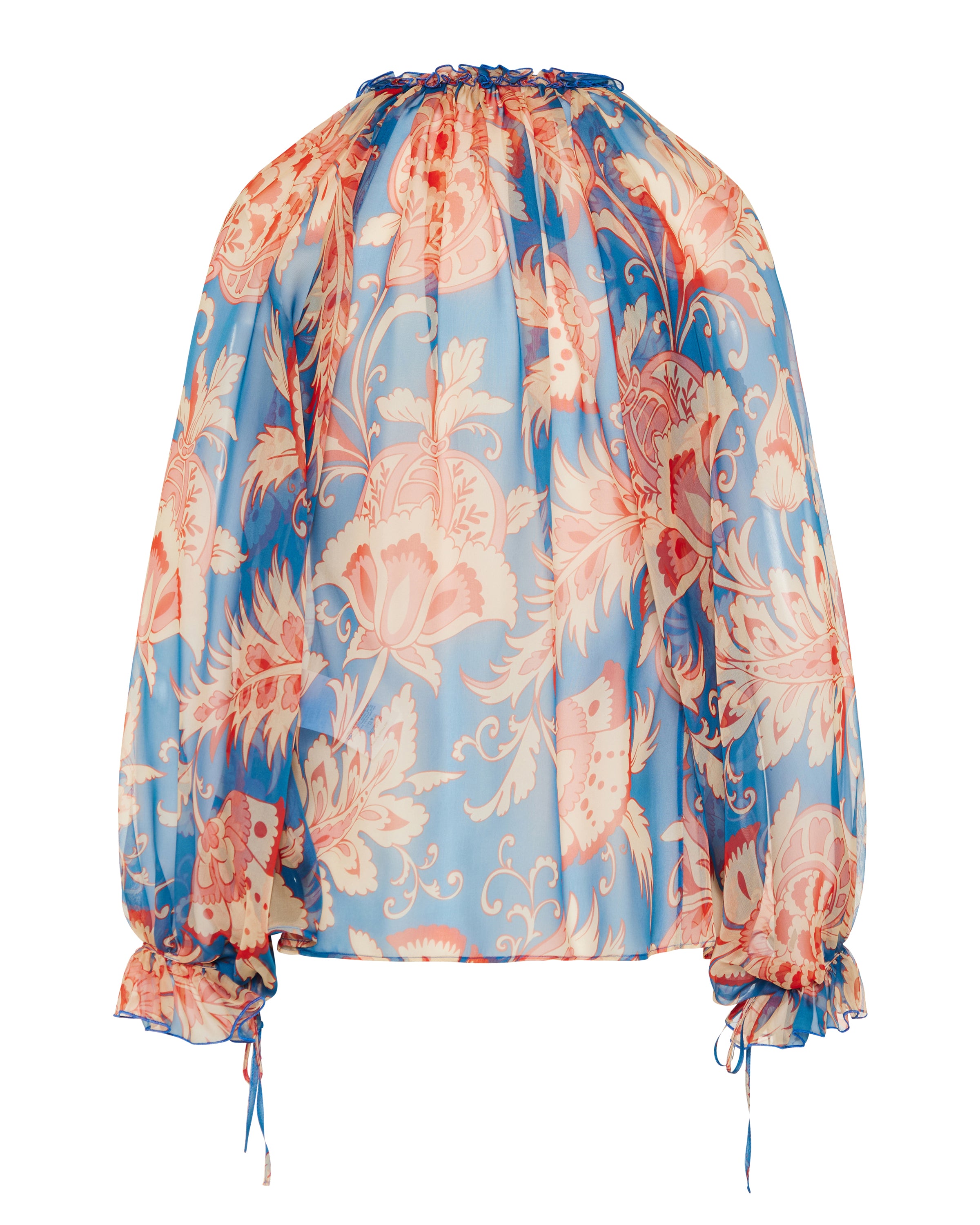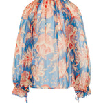 A lightweight silk chiffon blouse defined by a fluid floral print and a softly structured peplum silhouette.