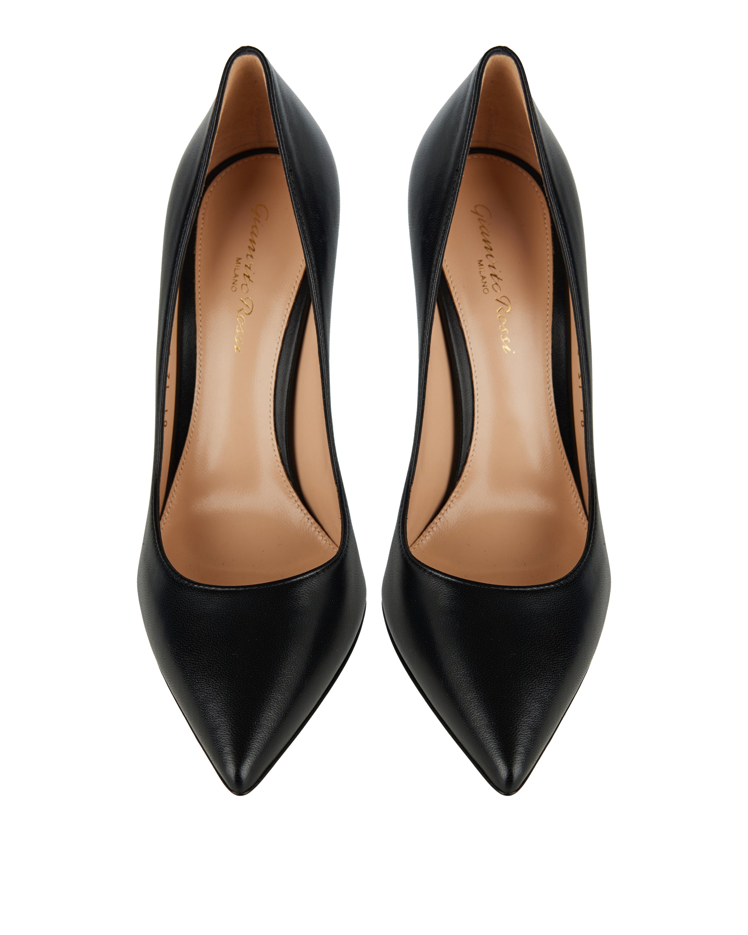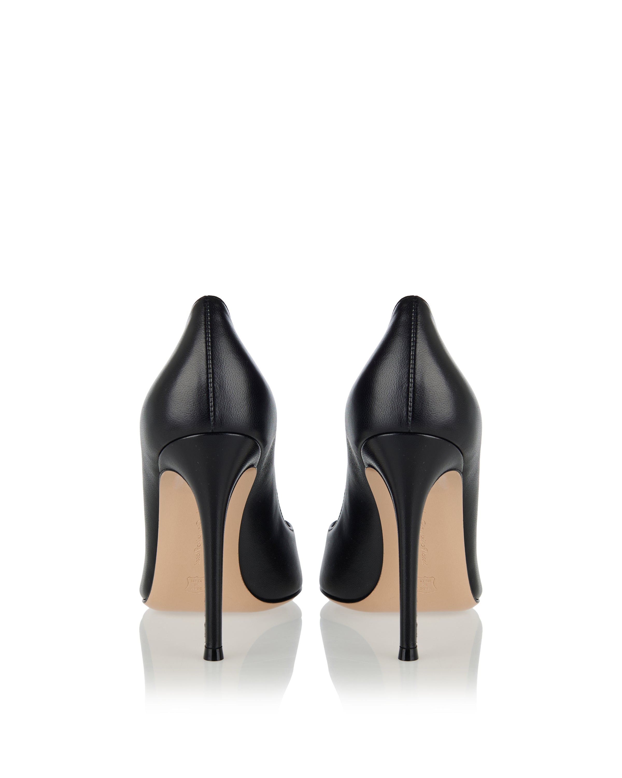 A sleek pump silhouette crafted in smooth leather, defined by a pointed toe and a high stiletto heel for a refined, elegant profile.