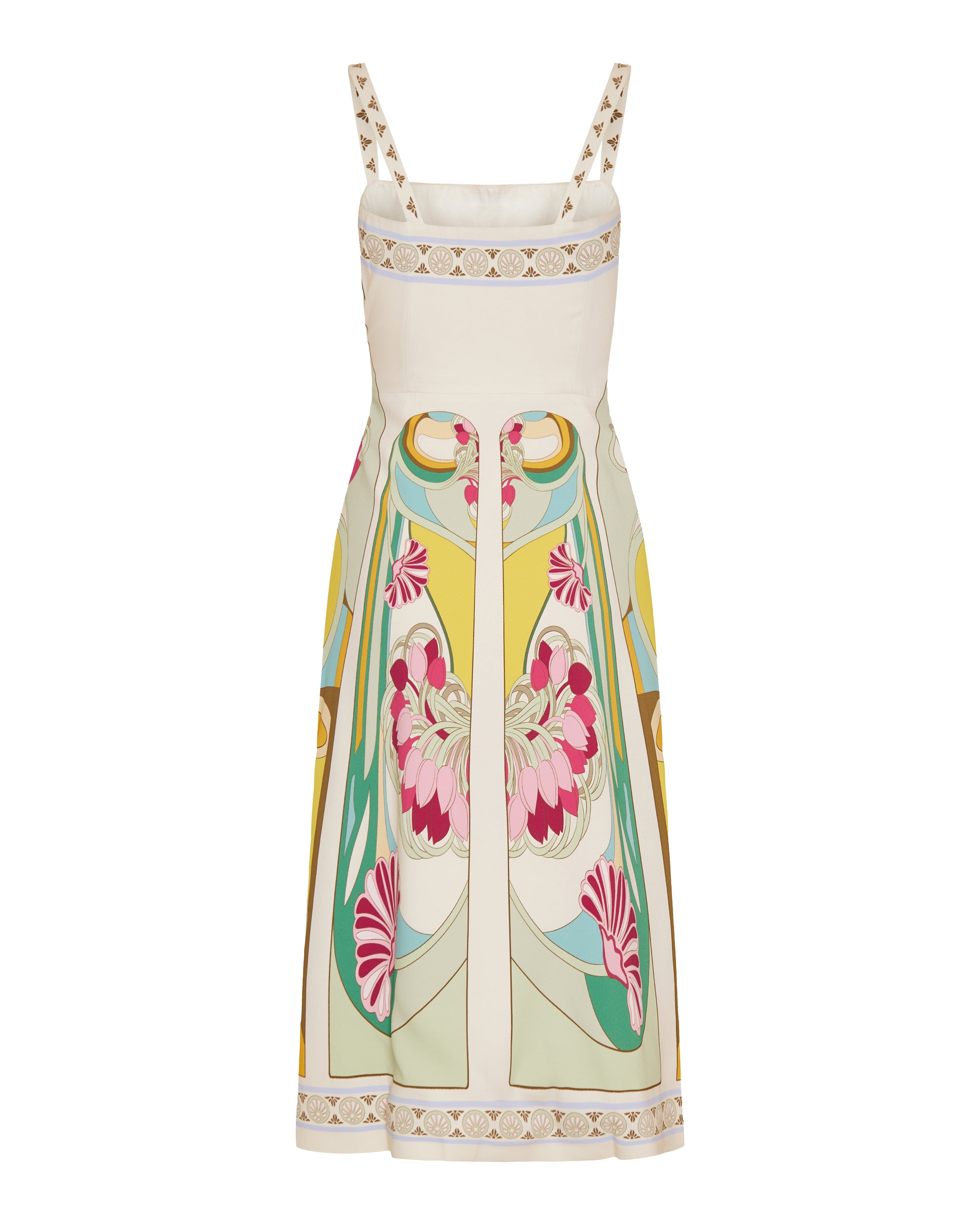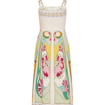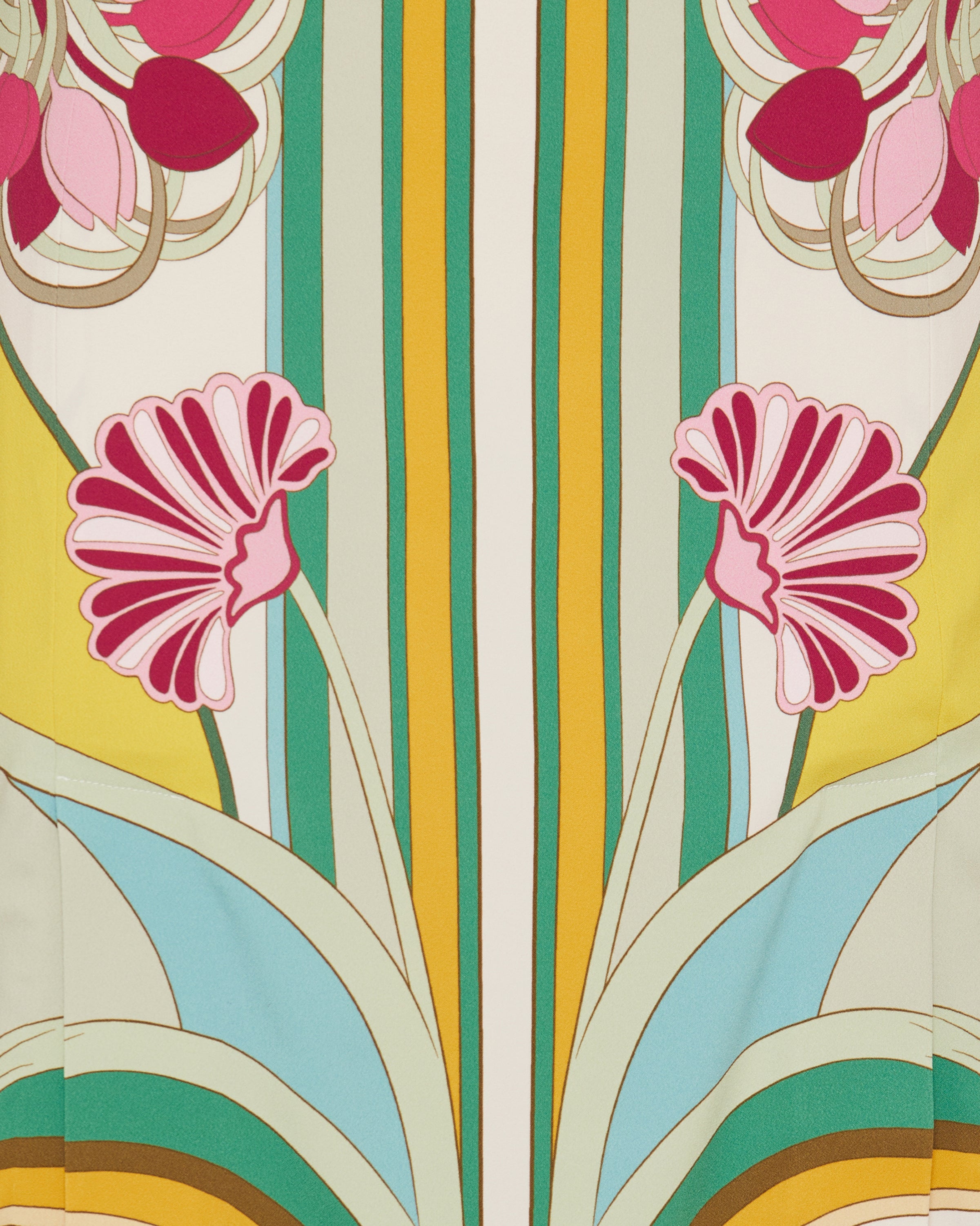 A fluid dress crafted in lightweight fabric, featuring an all-over tulip print and a softly flared silhouette for bold, feminine elegance.