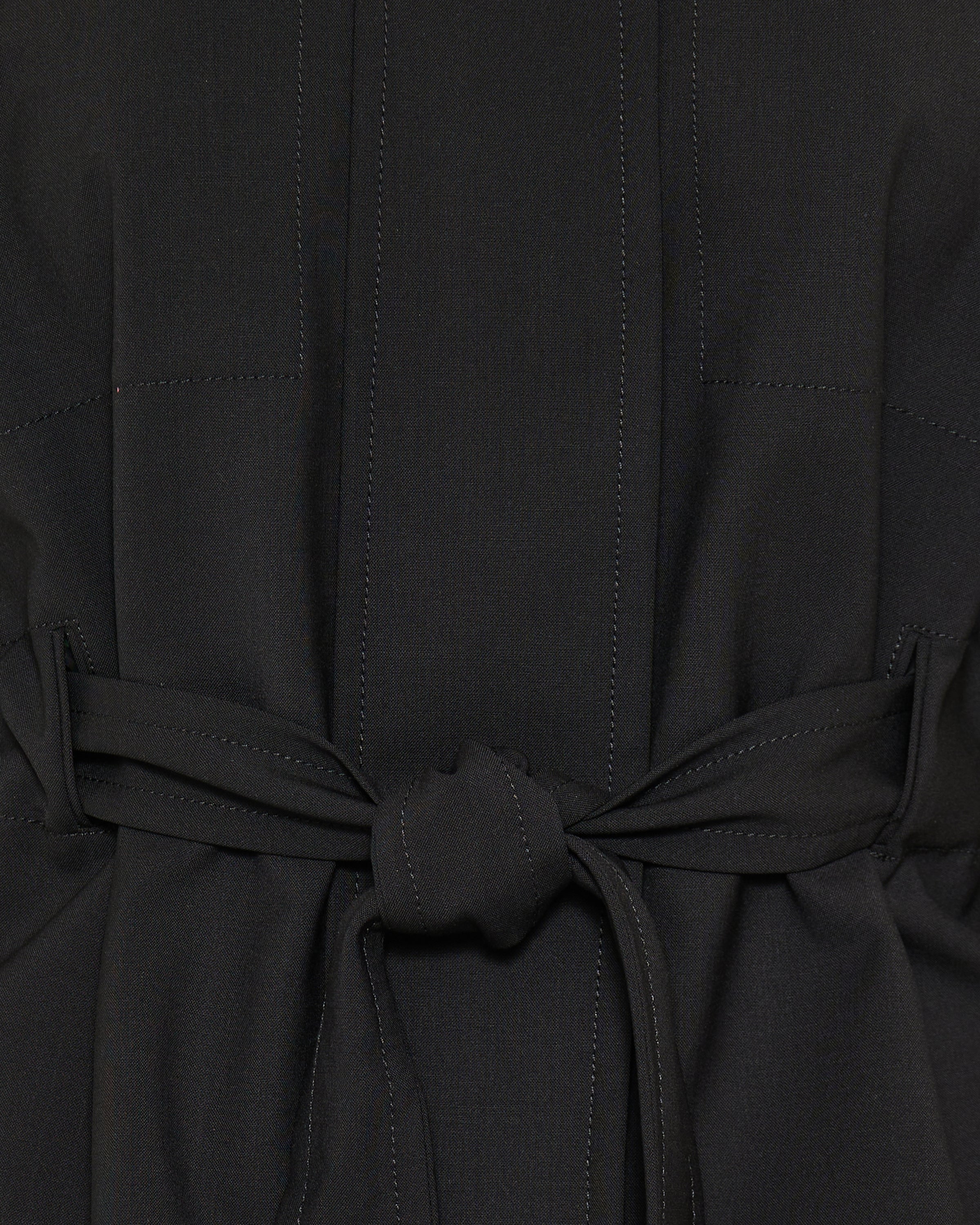 • Belted waist closure