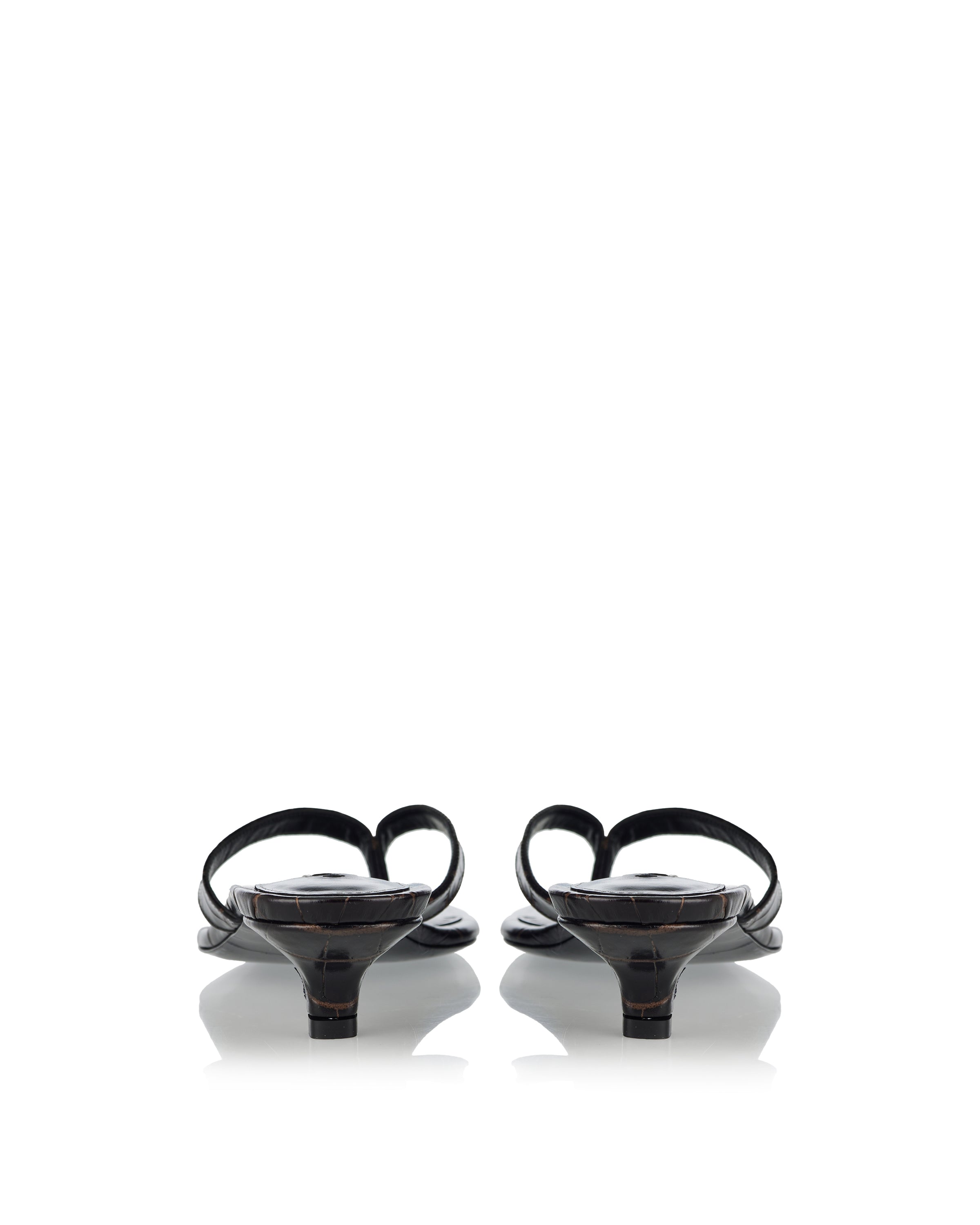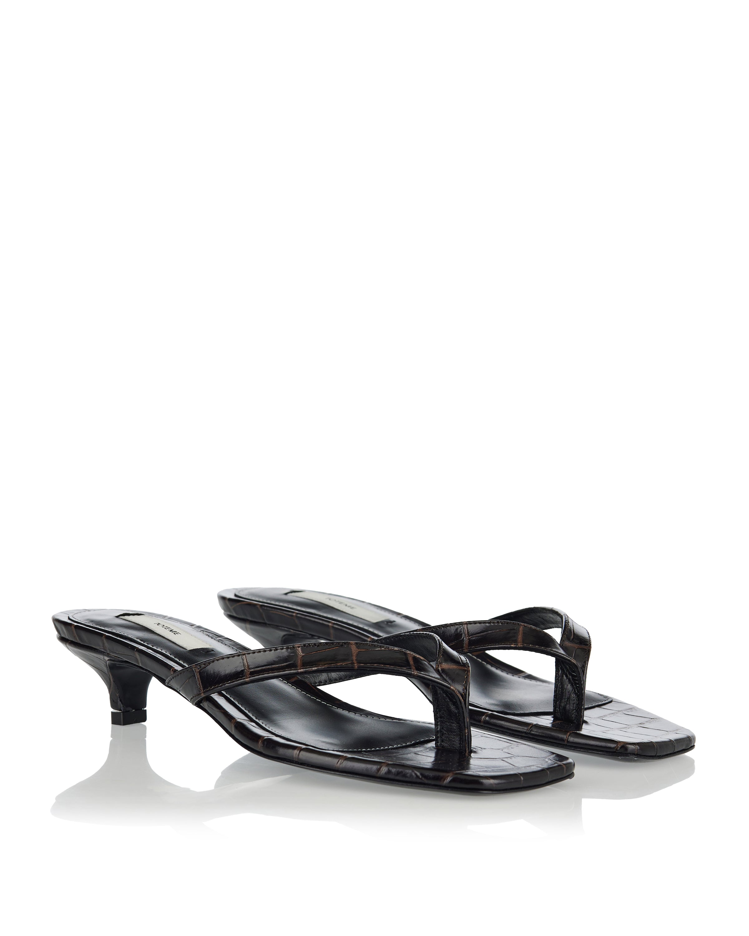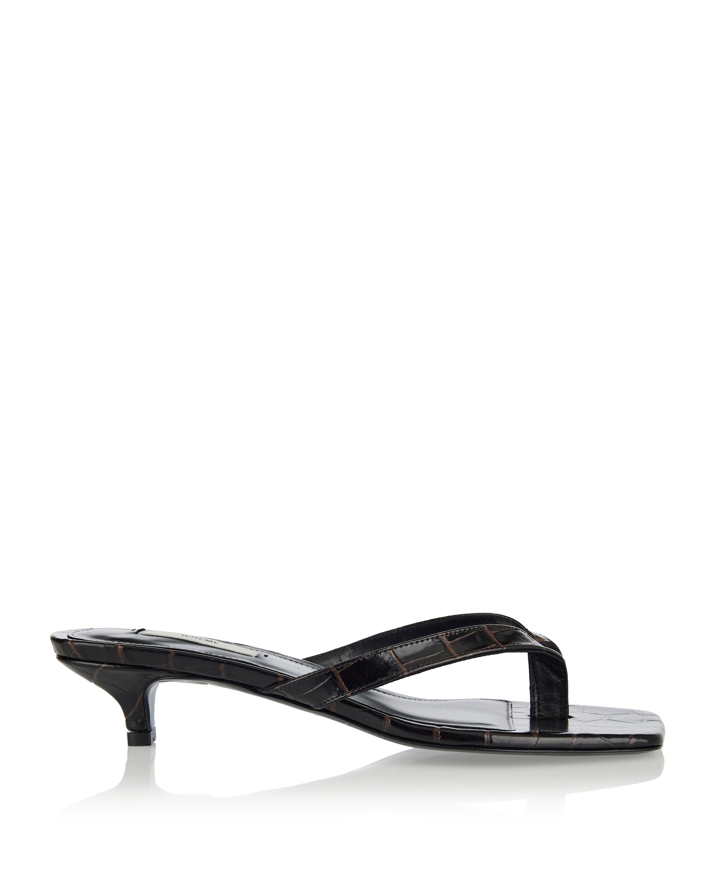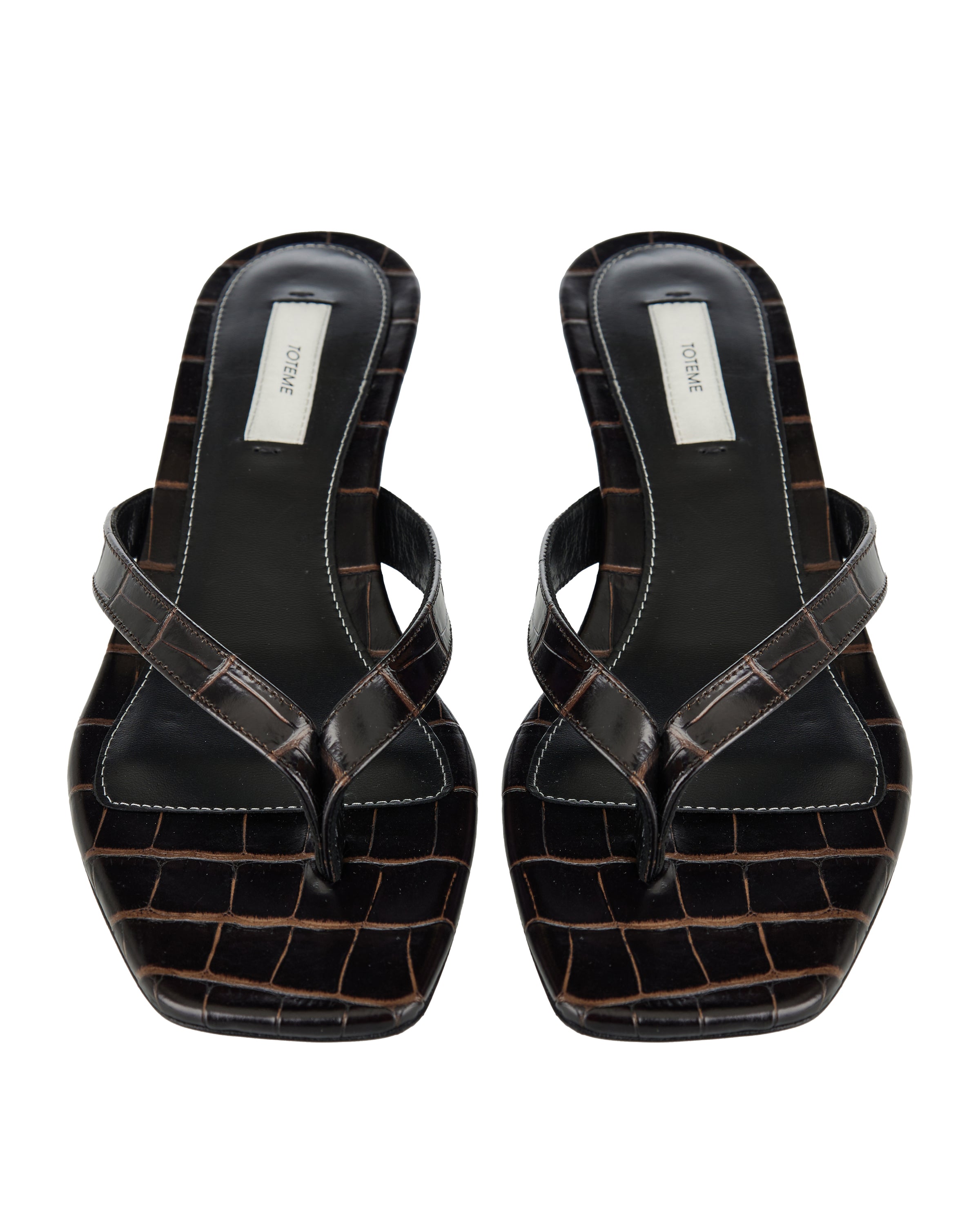 Minimal thong sandals crafted from croc-effect leather, defined by a sleek silhouette and refined textural finish.