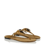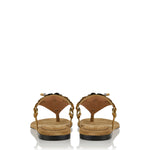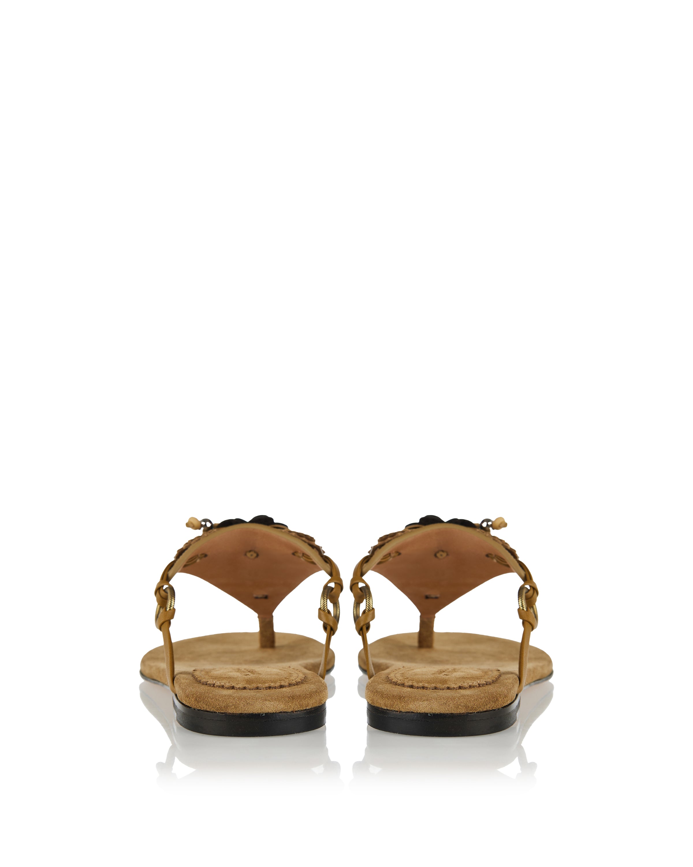 A minimalist strappy sandal in smooth leather, featuring a sculpted mid-height block heel and refined architectural lines.