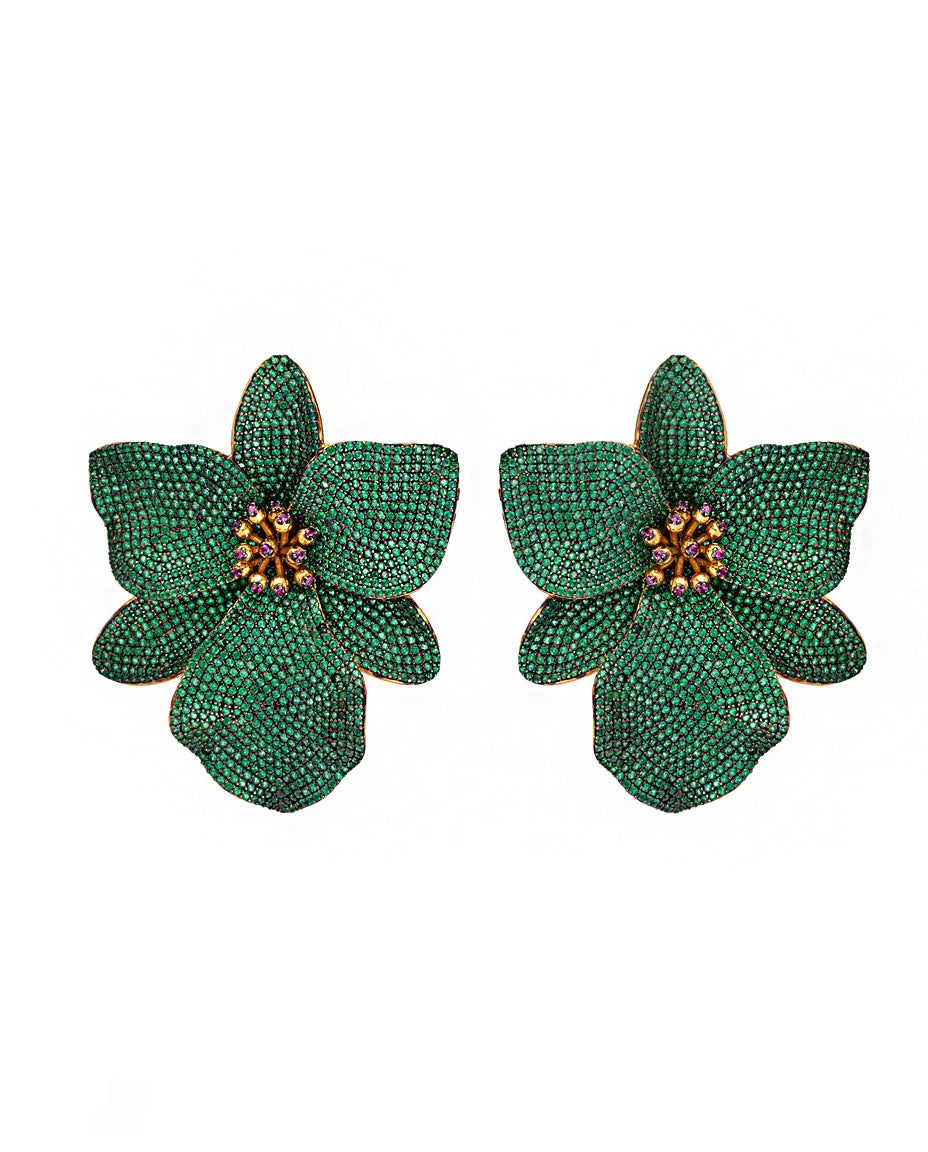 Statement earrings inspired by orchid blooms, designed with sculptural form to frame the face with refined, romantic impact.
