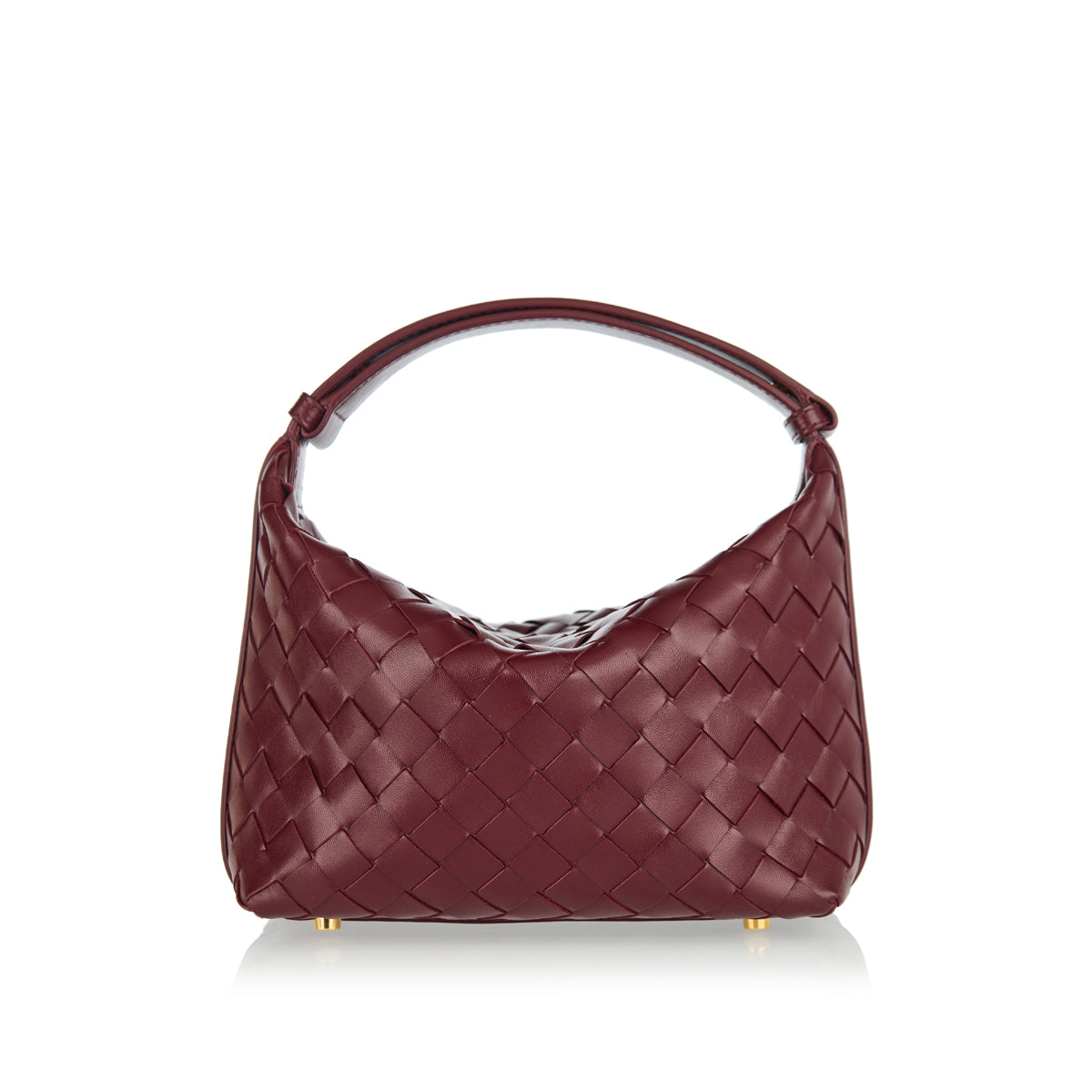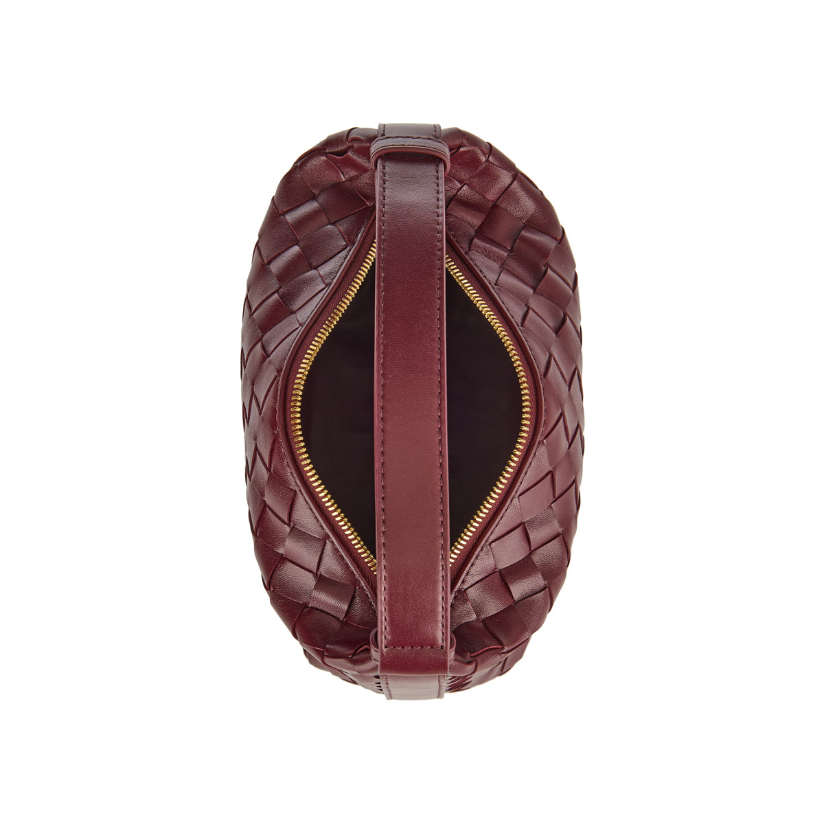 This shoulder bag with Intrecciato craftsmanship in leather features shoulder strap with adjustable press stud, one main compartment and top zip closure.