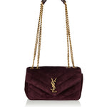 Small shoulder bag crafted from matelassé suede, defined by its softly structured silhouette and signature YSL hardware, offering refined elegance in a compact format.