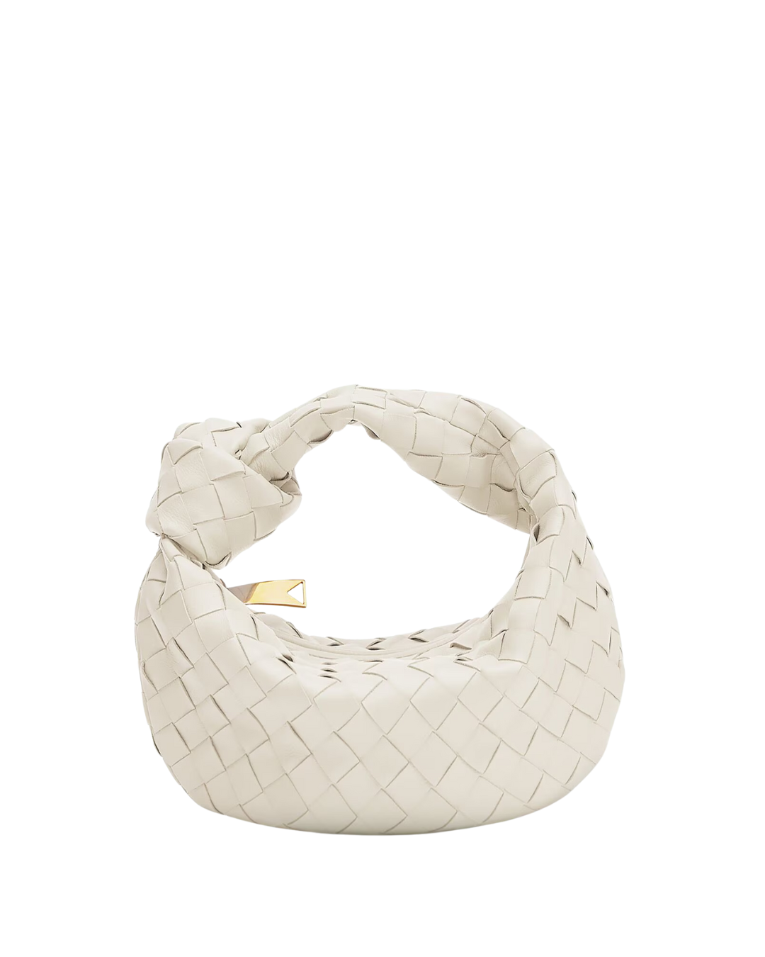Designed with a compact, softly structured silhouette, this mini bag is defined by a refined woven construction that highlights artisanal craftsmanship. The rounded shape and knotted top handle create a sculptural yet balanced profile, offering elegance without excess. Lightweight and versatile, it is suitable for daytime occasions, refined casual styling, and evening looks, delivering understated sophistication with a modern, timeless character.