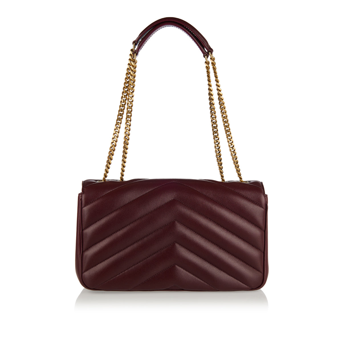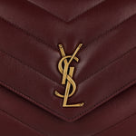 Crafted in Italy from quilted matelassé lambskin, this medium Loulou bag features a sliding curb-chain strap with leather detail, signature Y‑monogram, and includes a detachable pouch and pocket mirror.