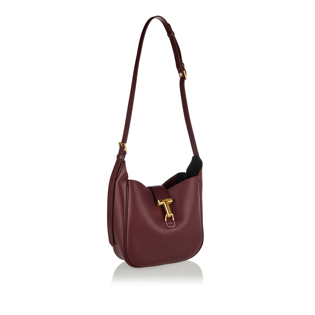 Introducing the exquisite Tom Ford Hobo Small Bag, a testament to refined sophistication. Crafted from 100% luxurious leather, this versatile bag is defined by its iconic T PIN clasp detail, meticulously engraved with the distinguished TOM FORD logo. The adjustable leather shoulder strap offers multiple styling options. The bag's thoughtful design includes one spacious main compartment and two inner open pockets, ensuring effortless organization.