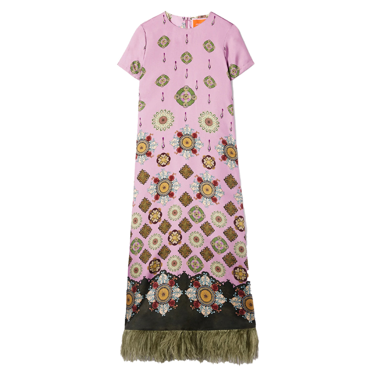 La DoubleJ Swing feather-trimmed silk maxi dress