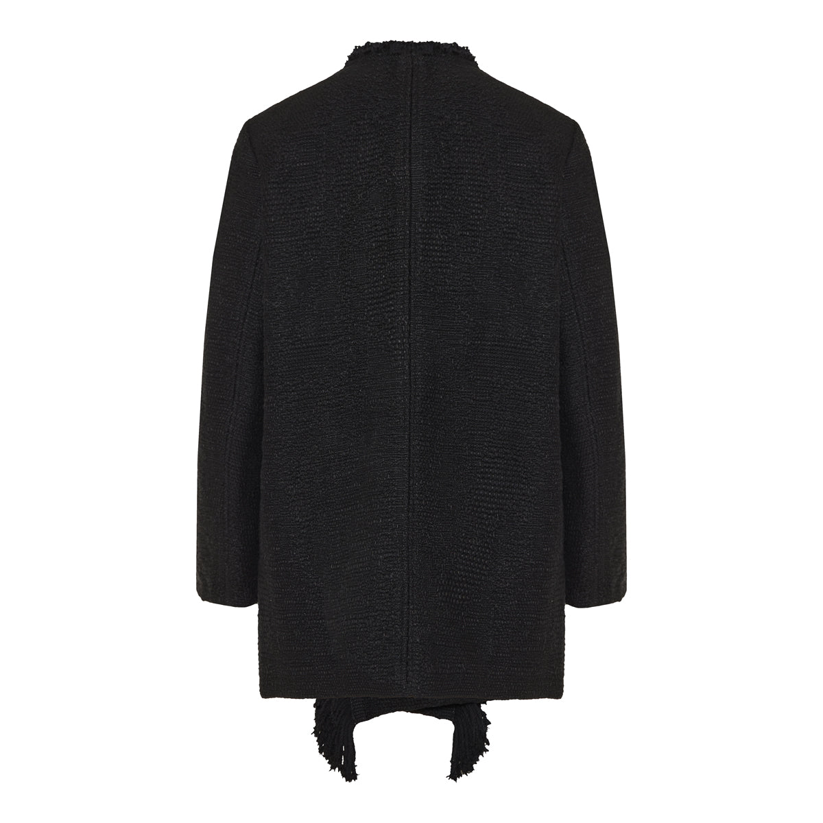 The Isabel Marant Garmia jacket is crafted from black viscose with a fluid drape that enhances its relaxed tailoring. Detailed with a sharp lapel and minimal fastening, it embodies the house’s effortless Parisian aesthetic. A versatile piece that transitions easily from polished daywear to understated evening elegance.