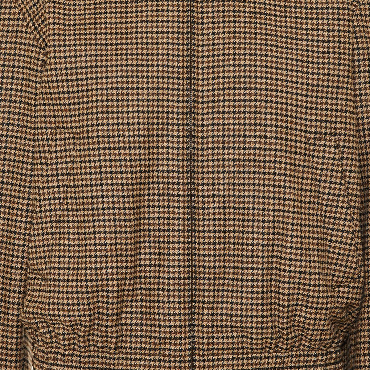 This Saint Laurent Checked Zip-Up Bomber Jacket is a luxurious piece crafted from a blend of recycled wool and other premium fibers. Featuring a classic checked pattern, zip fastening, and welt pockets, this jacket offers a contemporary silhouette with a nod to vintage style. Ideal for both casual and semi-formal occasions, it adds a touch of sophistication to any ensemble.