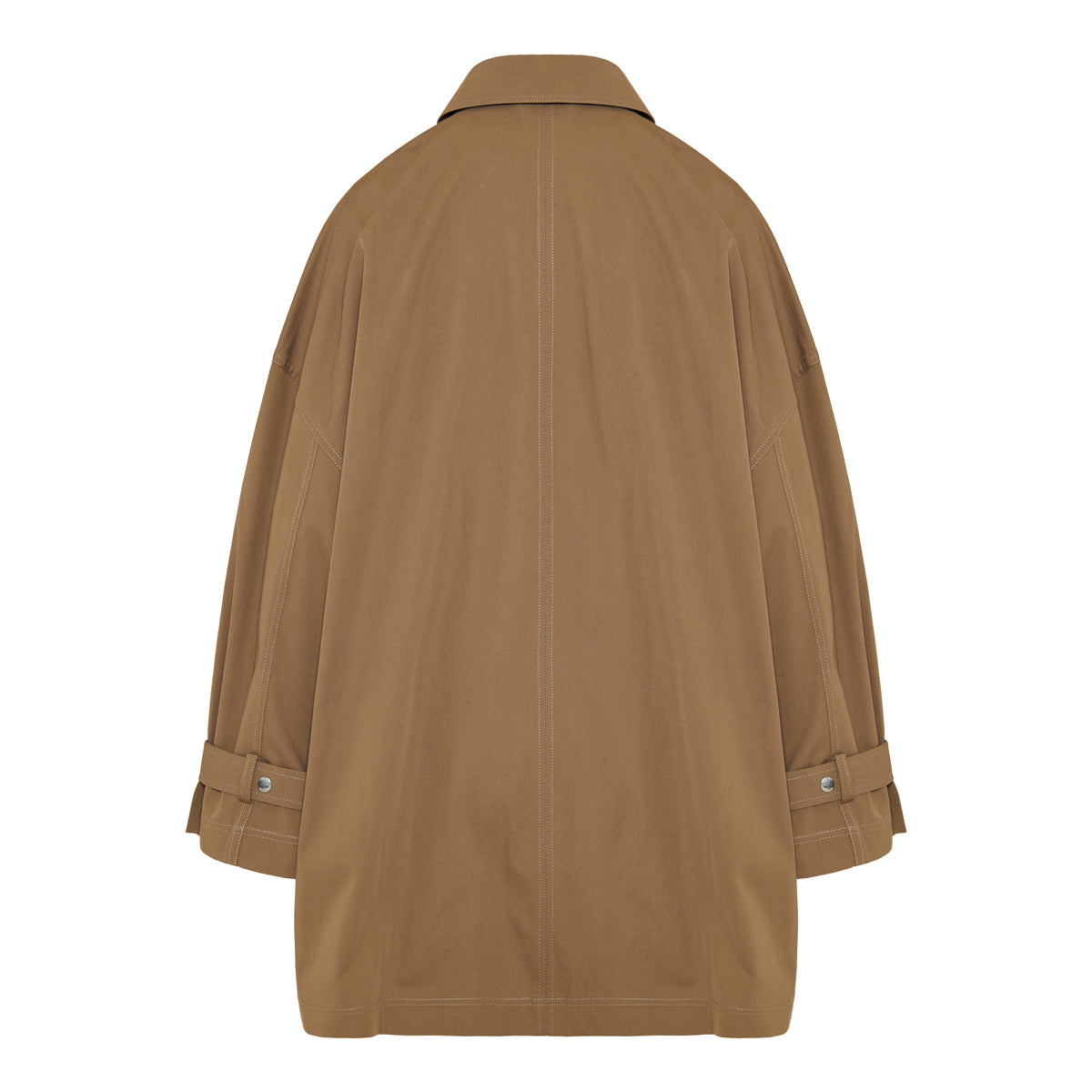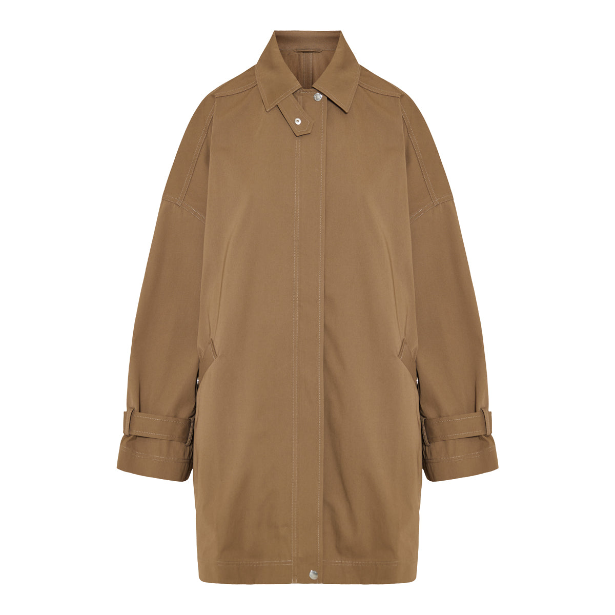 This oversized brown cotton jacket by Toteme is crafted from pure cotton in a structured silhouette. Designed with dropped shoulders, large front patch pockets, and a concealed button closure, it offers relaxed elegance while remaining versatile enough for both casual and smart-casual styling. Its timeless cut makes it an essential outerwear piece for transitional seasons.