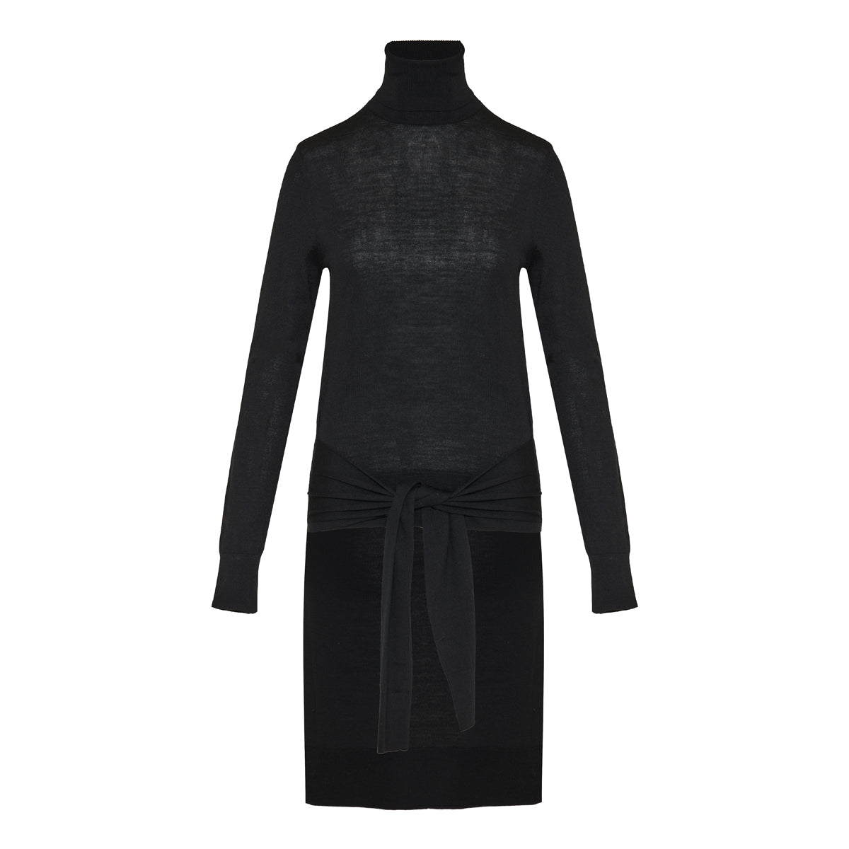A contemporary turtleneck featuring additional sleeves at the hips, creating the illusion of a second sweater casually tied around the waist. Finely knitted to a slim shape, this piece is crafted from a luxurious wool and silk blend, offering both warmth and style. Ideal for layering in cooler seasons.