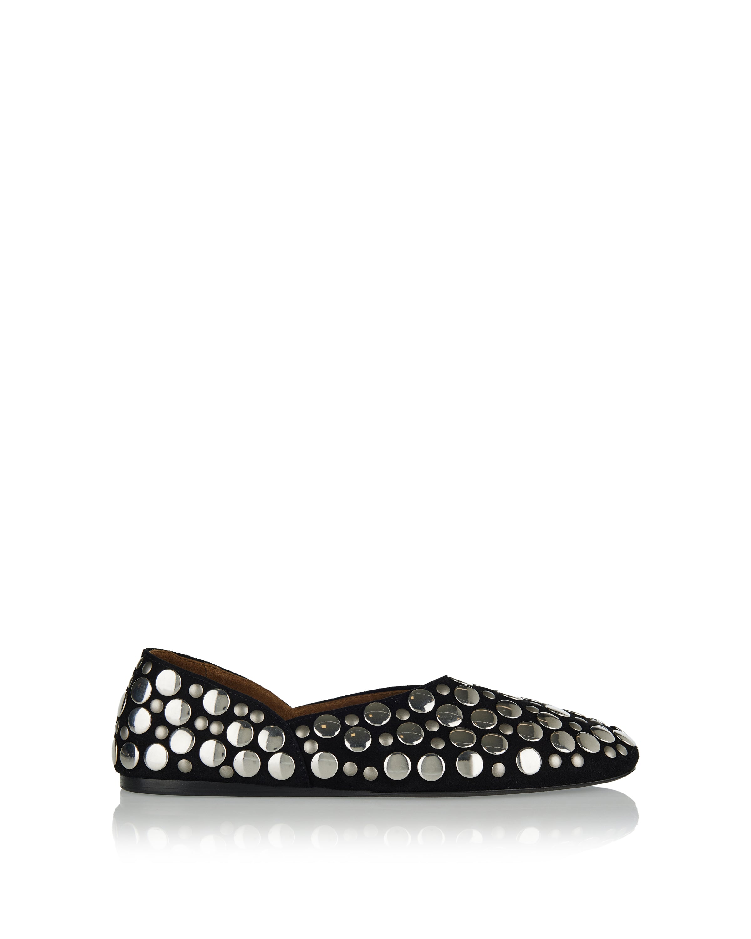 Refined with a subtle edge, the Jane ballet flats reflect Khaite’s modern interpretation of timeless footwear. Designed with a sleek, minimalist silhouette, they are accented by delicate stud detailing that adds texture without excess. Balanced between elegance and attitude, they are suitable for everyday wear, refined city styling, and polished casual looks, offering understated sophistication with a contemporary finish.